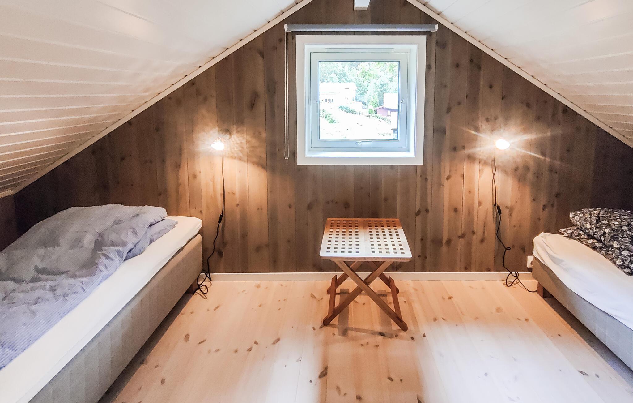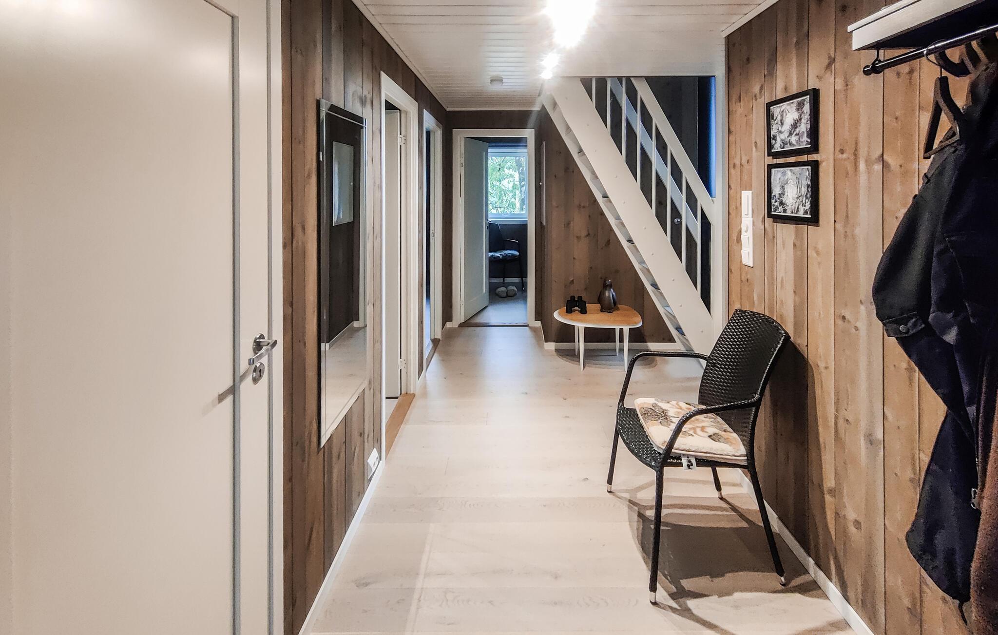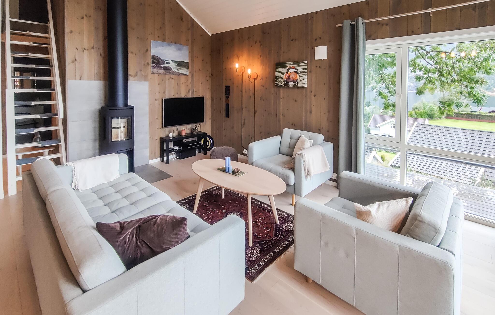 Dette moderne og stilfulle feriehuset i nærheten av Forsand har alt du trenger for en uforglemmelig ferie. Den åpne soveloftet skaper en luftig og koselig atmosfære, mens det velutstyrte kjøkkenet er perfekt for å lage mat sammen på kveldstid. Ved spisebordet kan dere spille spill eller ha lange samtaler før dere koser dere i stuen ved den knitrende vedovnen. Nyt utsikten over fjorden gjennom de store vinduene, eller gå ut på den romslige terrassen for å nyte solen og runde av kvelden med en grillfest.