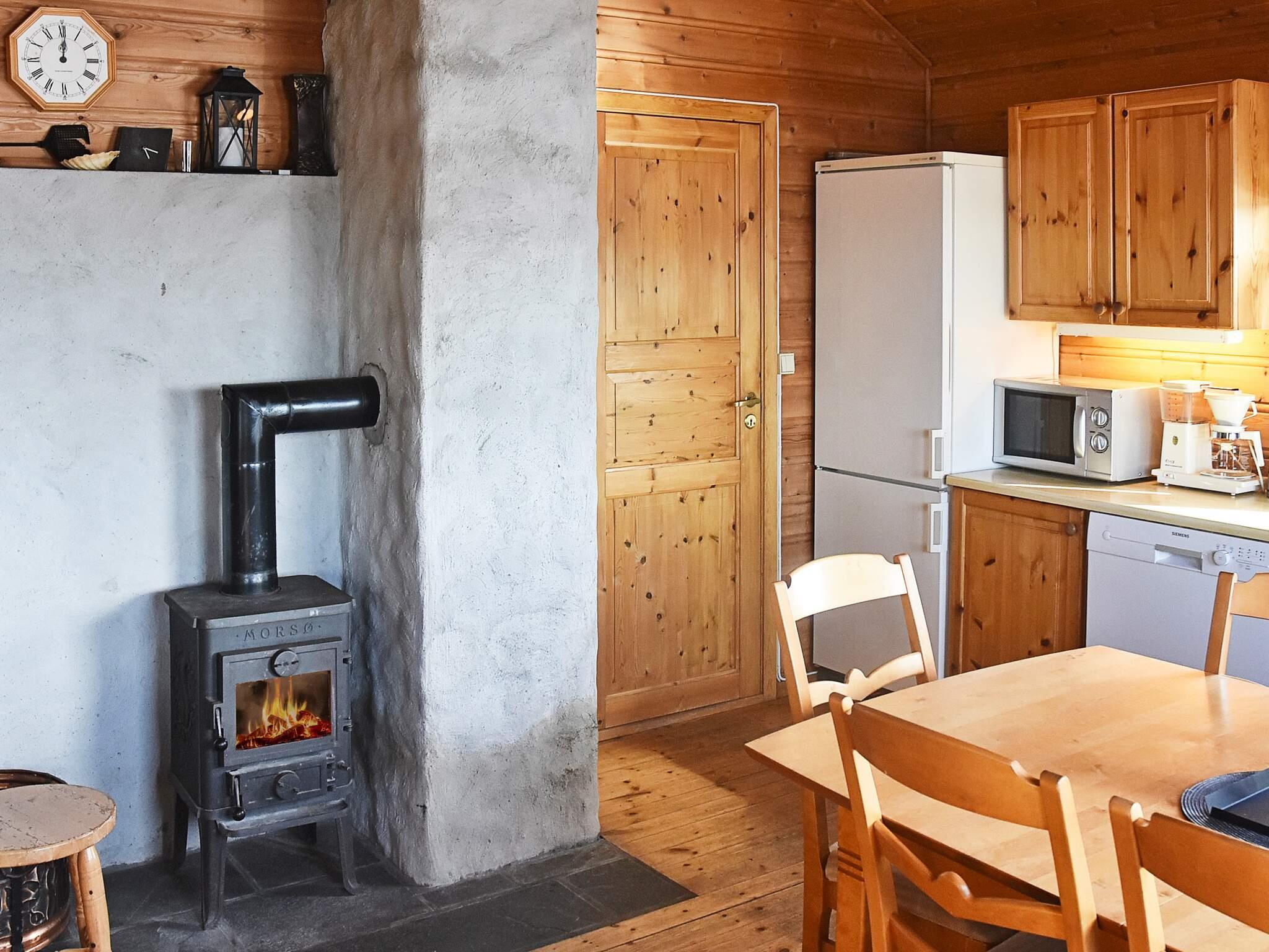 Stor og romslig stue med kjøkkenavdeling. 20 kvm delvis overbygd terrasse mot fjorden. TV: SmartTV+/Apple TV, norske, nordiske, tyske og europeiske TV-kanaler. Internett 100 Mbits. Køyeseng med 120 cm bredde nede og 75 cm bredde oppe. Hems for den spreke med to lave 90 cm brede senger, gode madrasser. Bratt stige opp til hemsen. Langgrunn sandstrand 150 m.