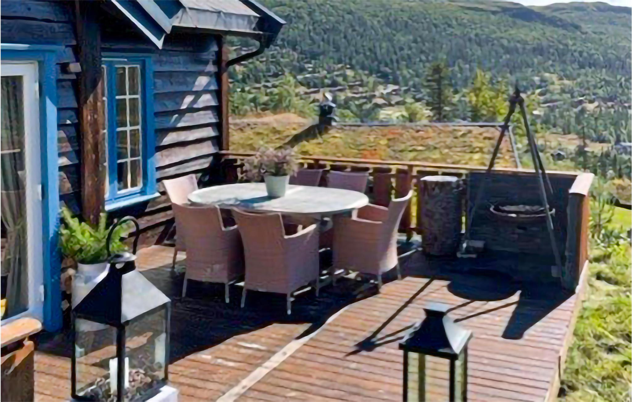 Den vakre terrassen gir deg en fantastisk utsikt over landskapet og innsjøene. Drikk morgenkaffen i solen på terrassen og diskuter hva du vil gjøre med dagen.