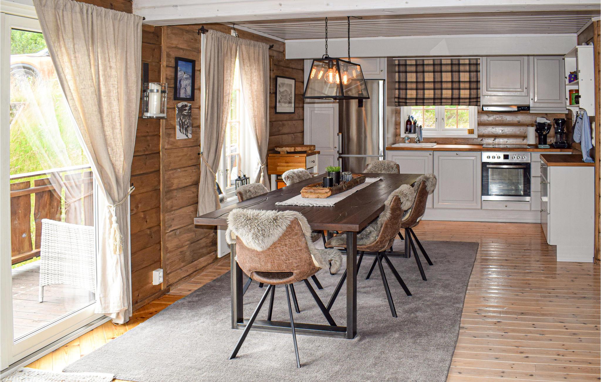 Tilbring en avslappende ferie i denne koselige hytta, som er perfekt for en stor familieferie eller en ferie med en familievenn. Her kan dere nyte den koselige atmosfæren foran peisen og spille brettspill sammen.