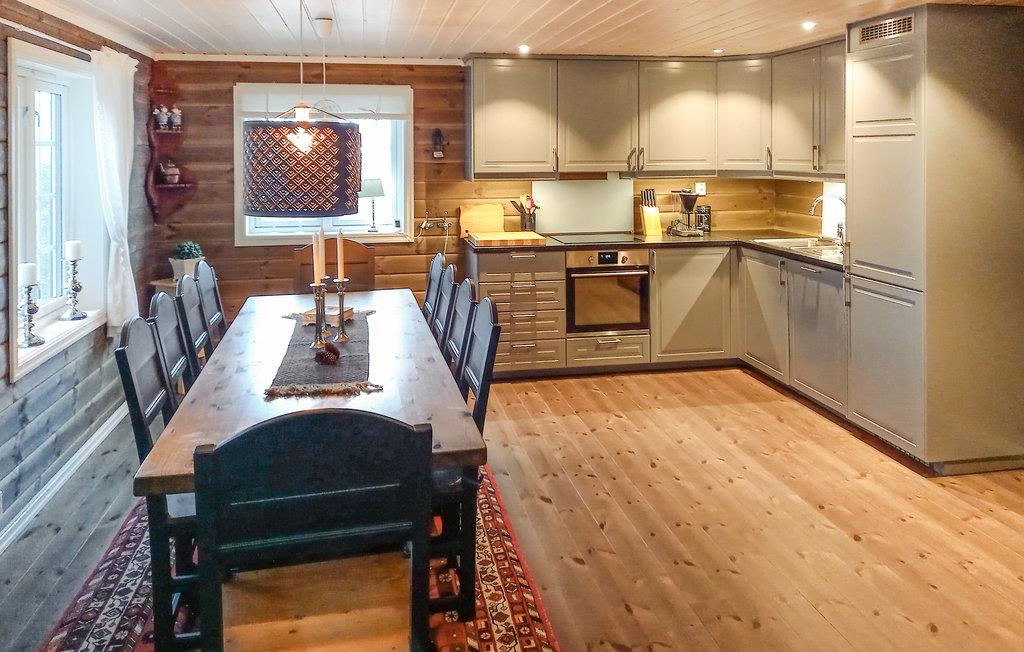 Det komfortable huset har en fantastisk beliggenhet for utendørsaktiviteter. Nyt en avslappende ferie sammen med dem du er glad i i de innbydende rommene, som er innredet i nyrustisk stil og har et varmt uttrykk med trepanel. Se frem til felles måltider eller underholdende spillkvelder i en hjemmekoselig atmosfære, og etter en begivenhetsrik dag kan du slappe av i sofaen med vakker utsikt over naturen og slå av en lang prat ved den knitrende peisen.