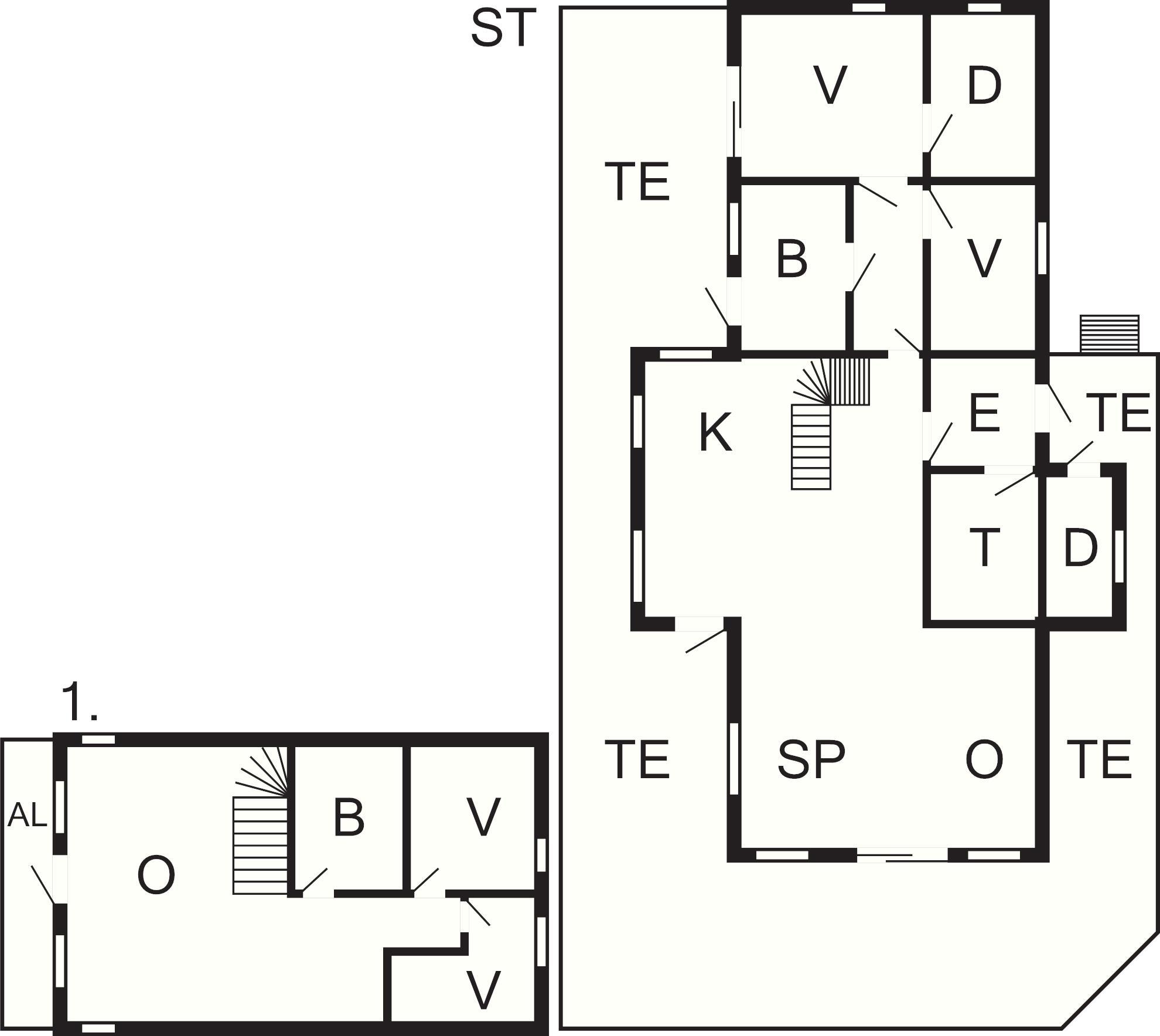 4 Soverom: (1DS+1K)+(1DS)+(1DS)+(1DS), barneseng