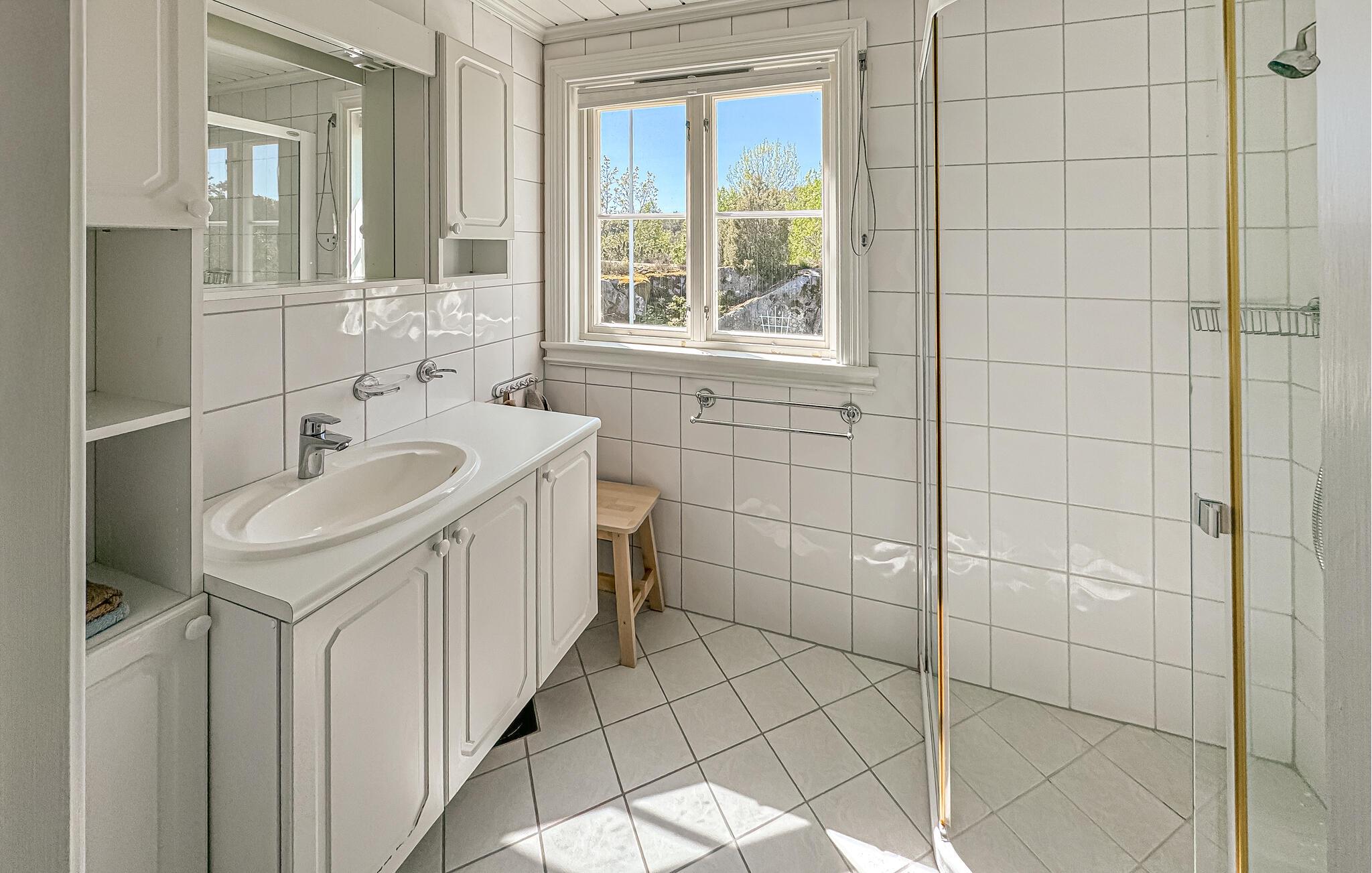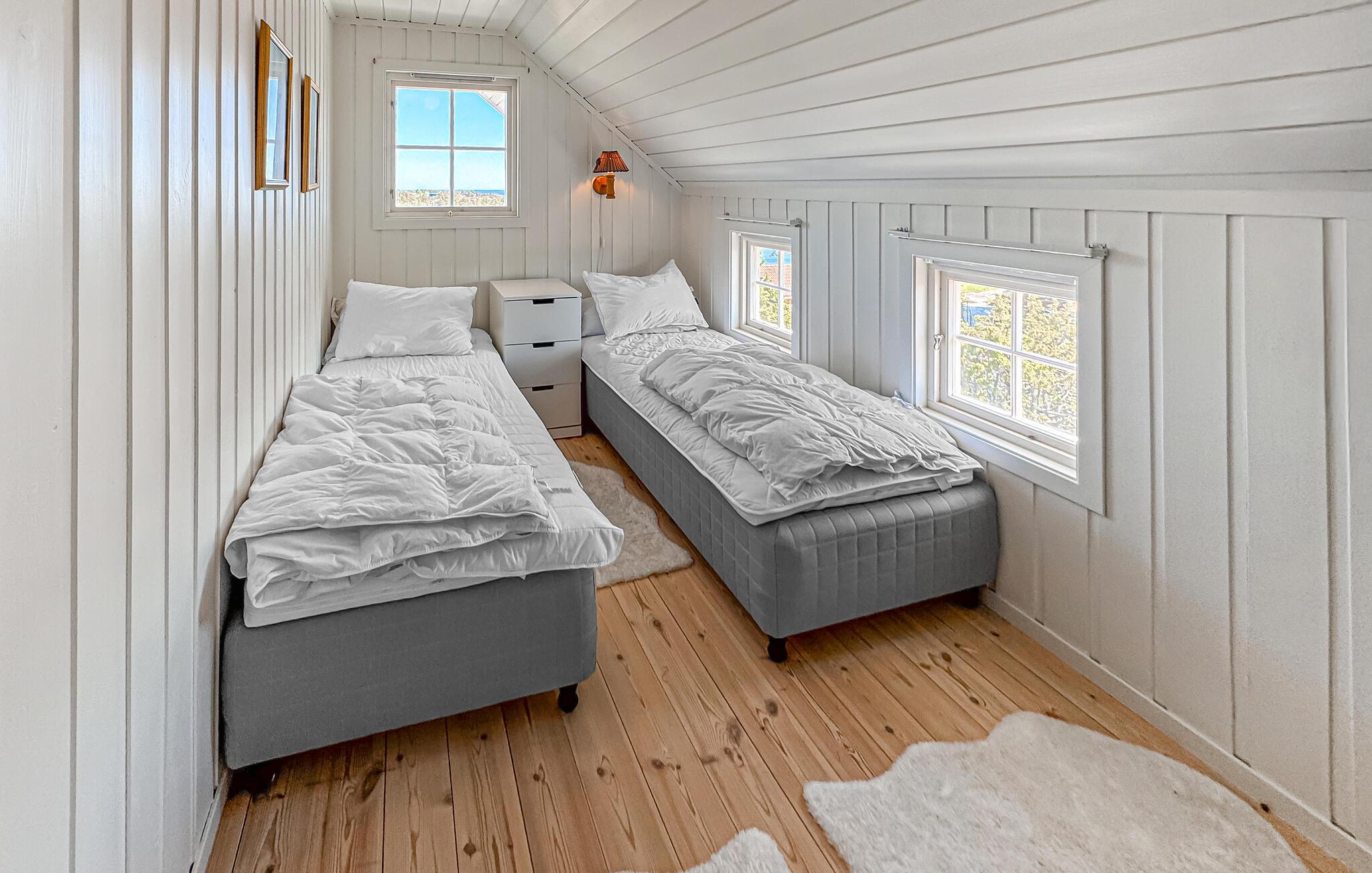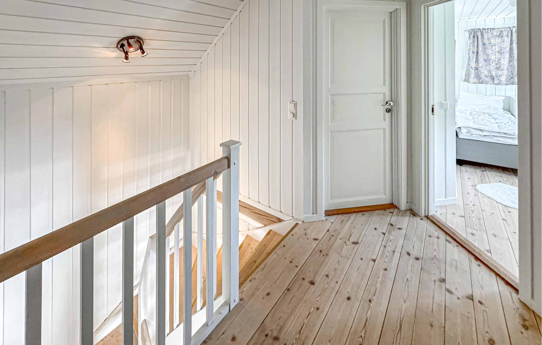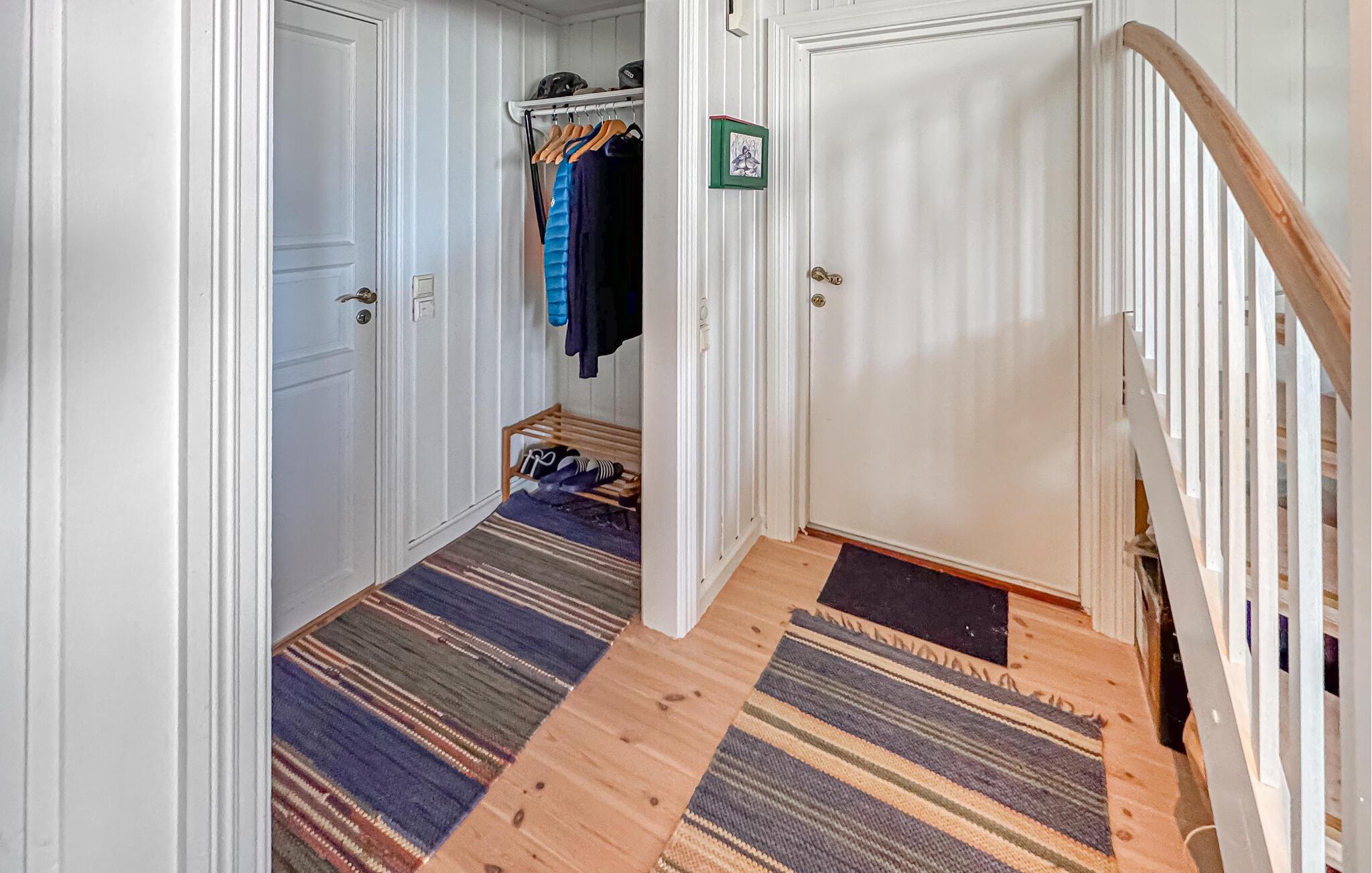 Tilbring en avslappende ferie i dette lyse og smakfullt innredede feriehuset som ligger i en åsside med vidstrakt utsikt over vannet. Den høye beliggenheten gir deg ikke bare fred og ro, men også en imponerende utsikt over det typiske norske kystlandskapet. Nyt avslappende stunder i den romslige stuen med hjørnesofa og vedovn i stilfulle omgivelser med mye naturlig lys. Lag mat sammen på det elegante kjøkkenet med vakker utsikt, eller nyt måltidene i den innbydende spisestuen med komfortable polstrede stoler og lysekrone. Små retreats med lesestoler og gulv-til-tak-vinduer innbyr også til opphold.