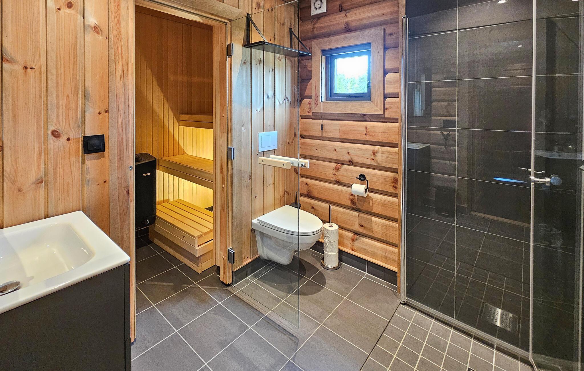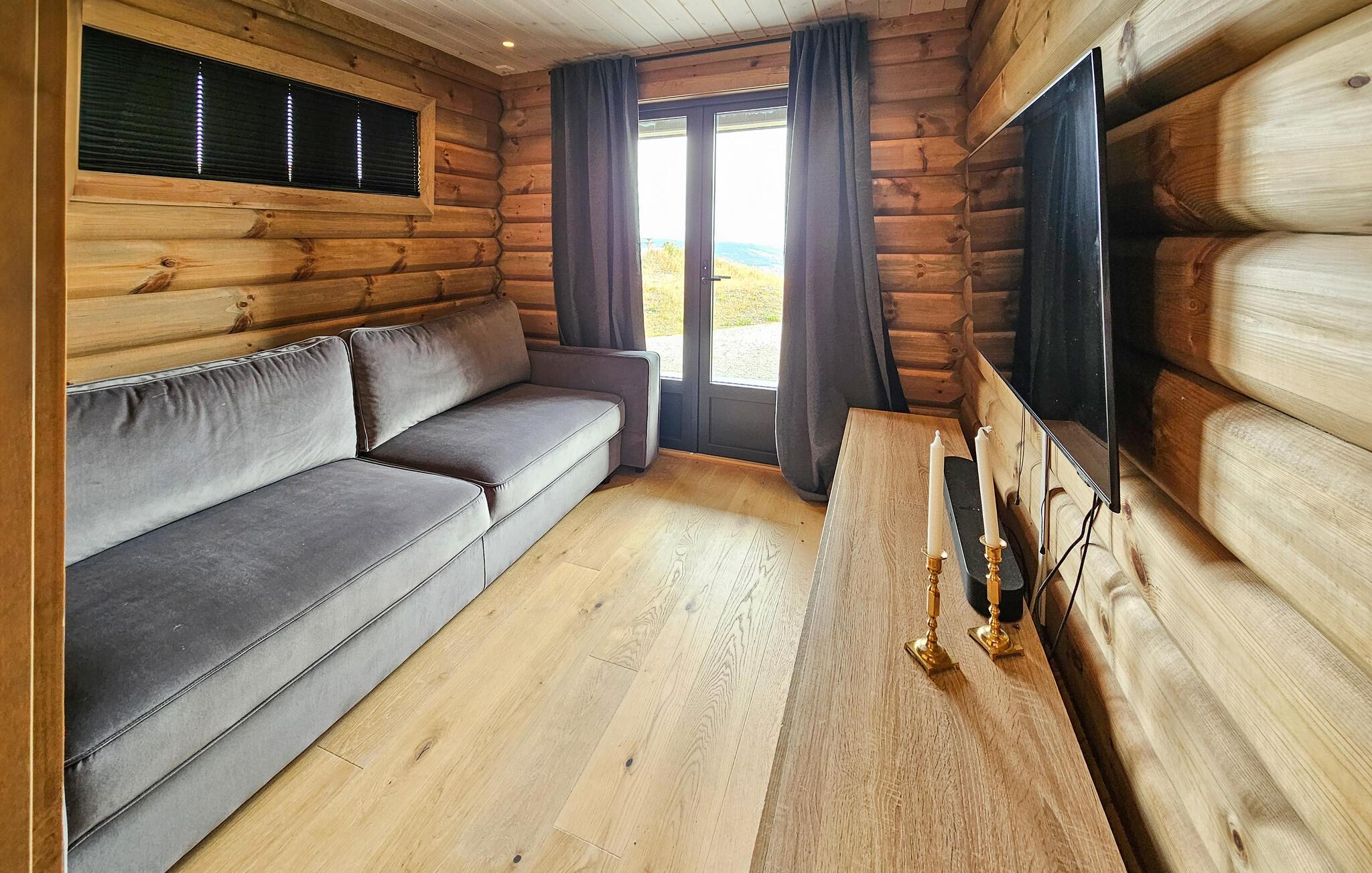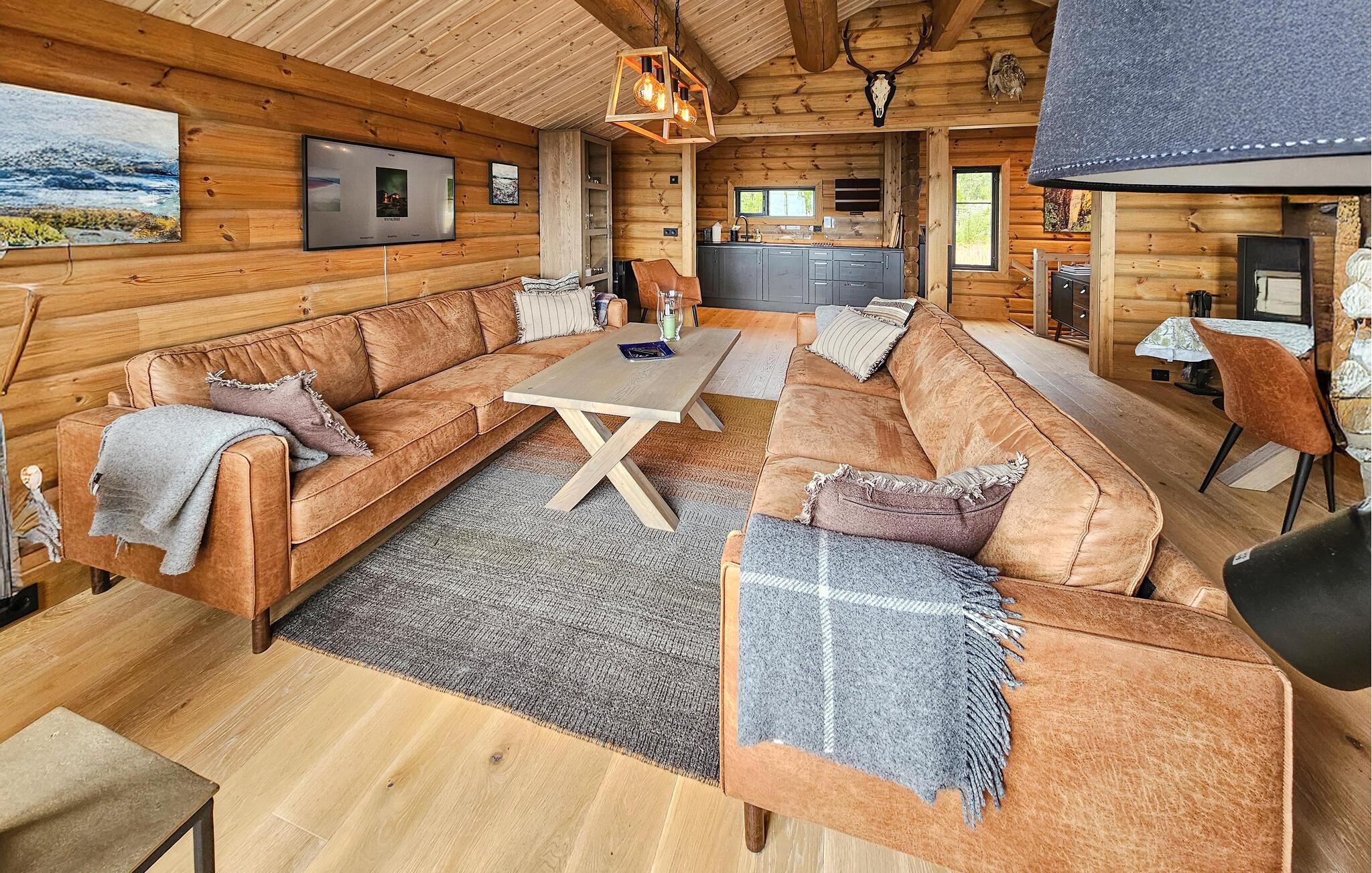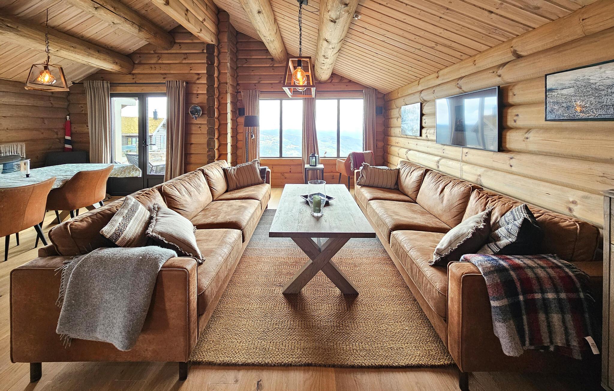 Dette feriehuset ligger på fjellet, og ønsker deg velkommen med en innbydende atmosfære. Sett deg godt til rette i den store sofaen med en kopp kaffe, stream favorittserien din eller slapp av i badstuen etter en dag med aktiviteter. På kjøligere dager kan du også varme deg ved den knitrende vedovnen.