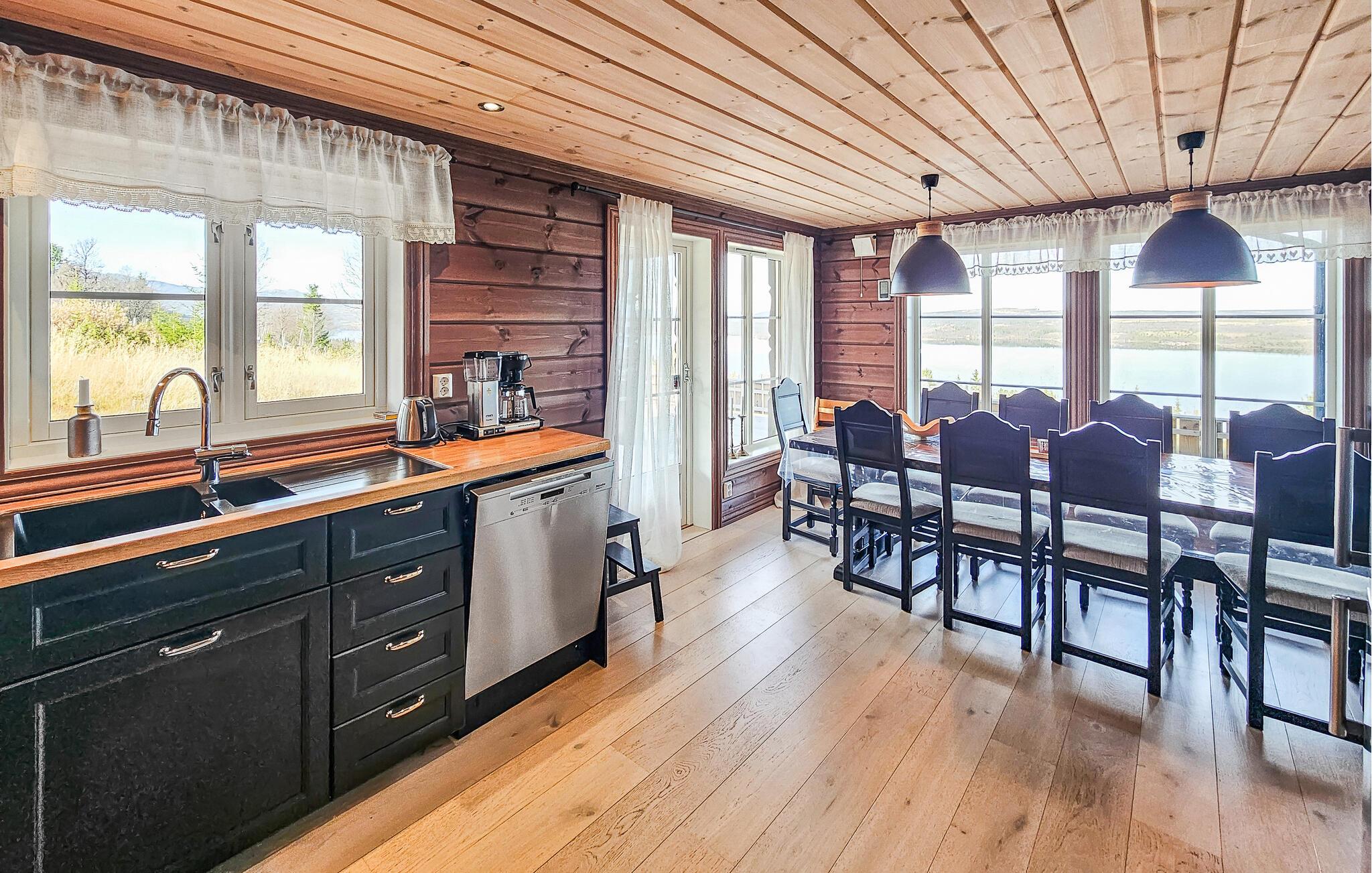 Lag deilige måltider sammen på det store kjøkkenet, og nyt dem på den store treterrassen, hvor du kan nyte det imponerende panoramaet til fulle.