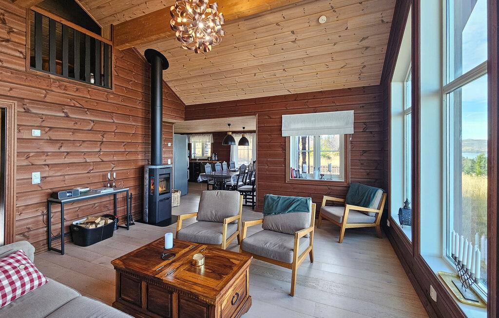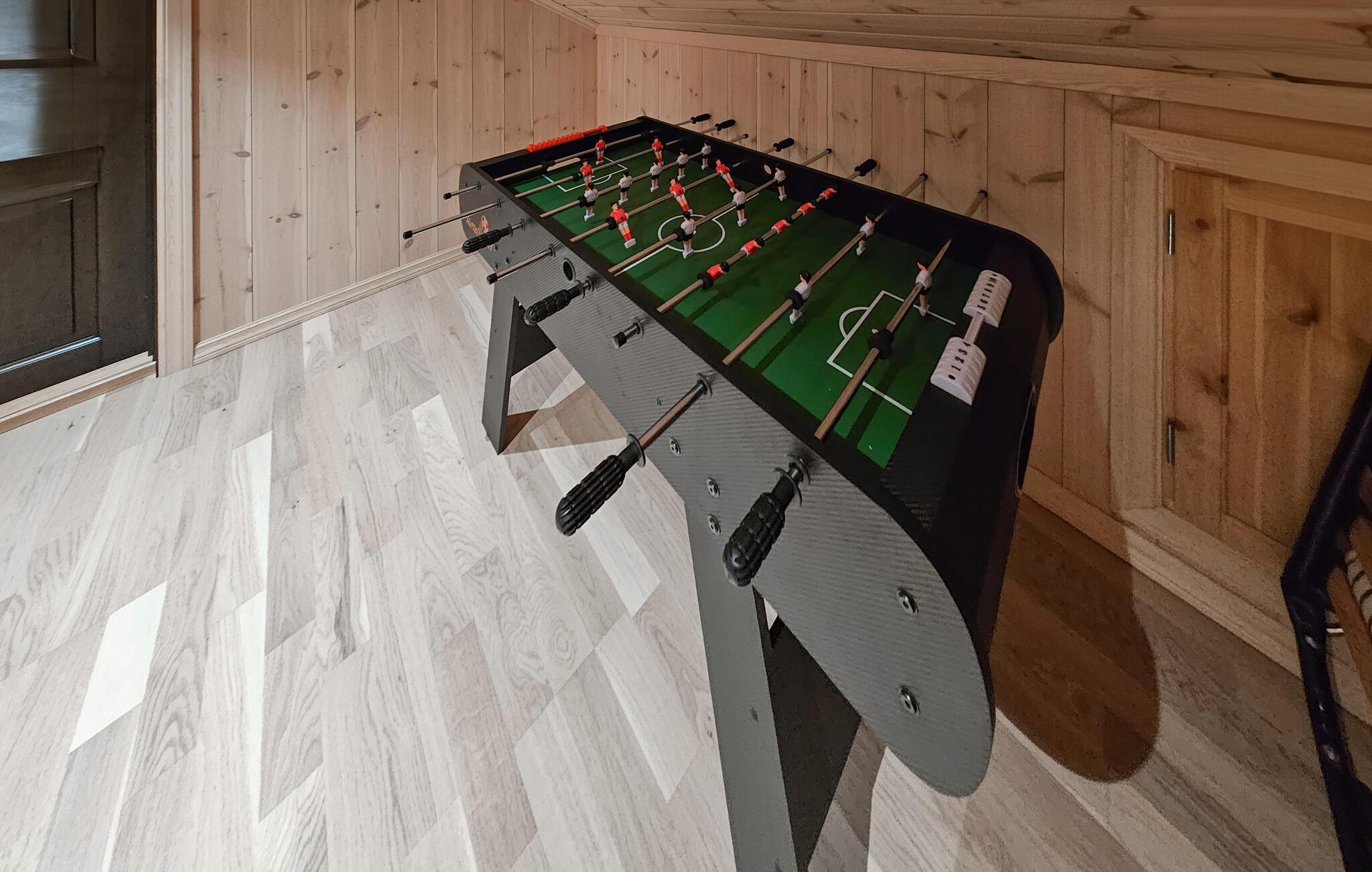 Dette feriehuset på Golsfjellet er en ekte perle for storfamilien. Med god plass og et varmt og innbydende interiør har det alt du trenger for en avslappende ferie. Kose deg i sofaen og nyt den fantastiske utsikten over fjorden mens du kjenner den koselige varmen fra vedovnen. Badstuen sørger for ytterligere avslapping, mens spennende timer venter i bordfotballturneringen - ideelt for sosiale kvelder med hele familien.
