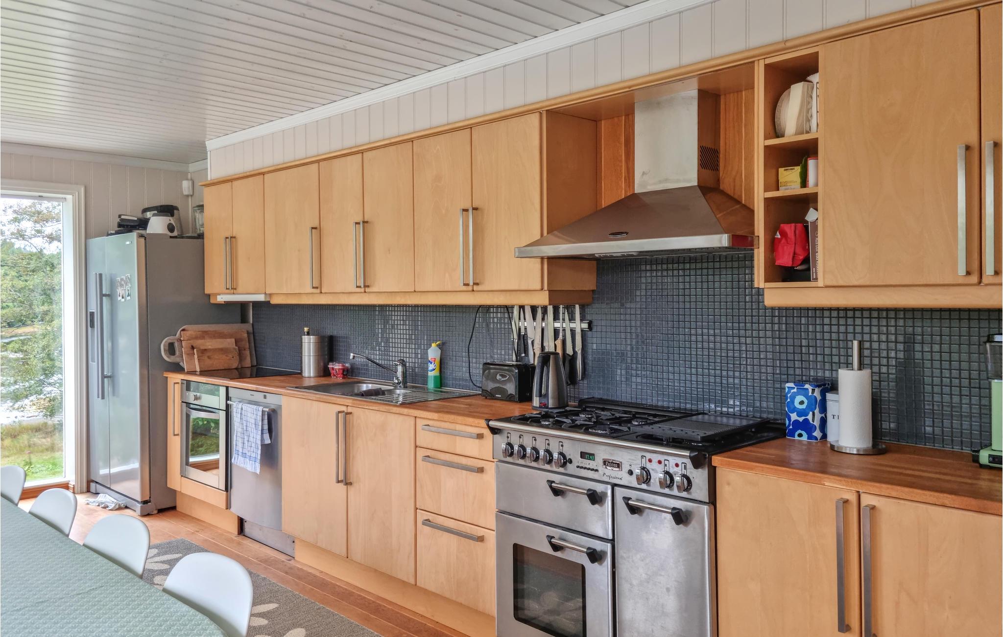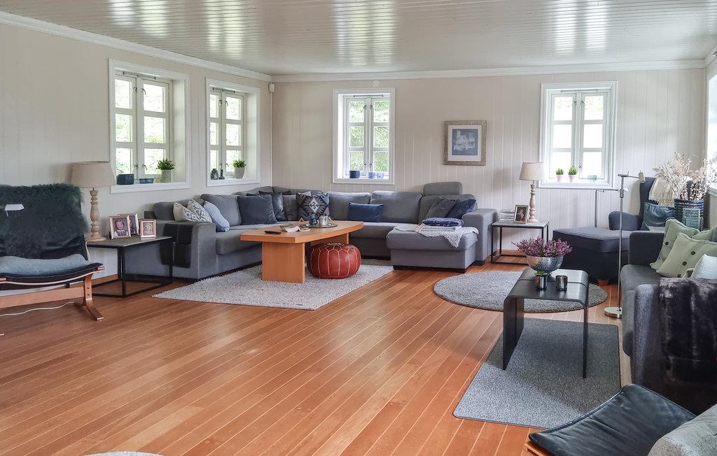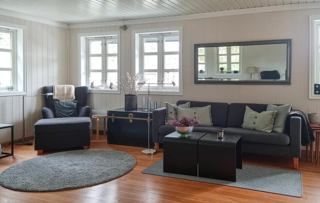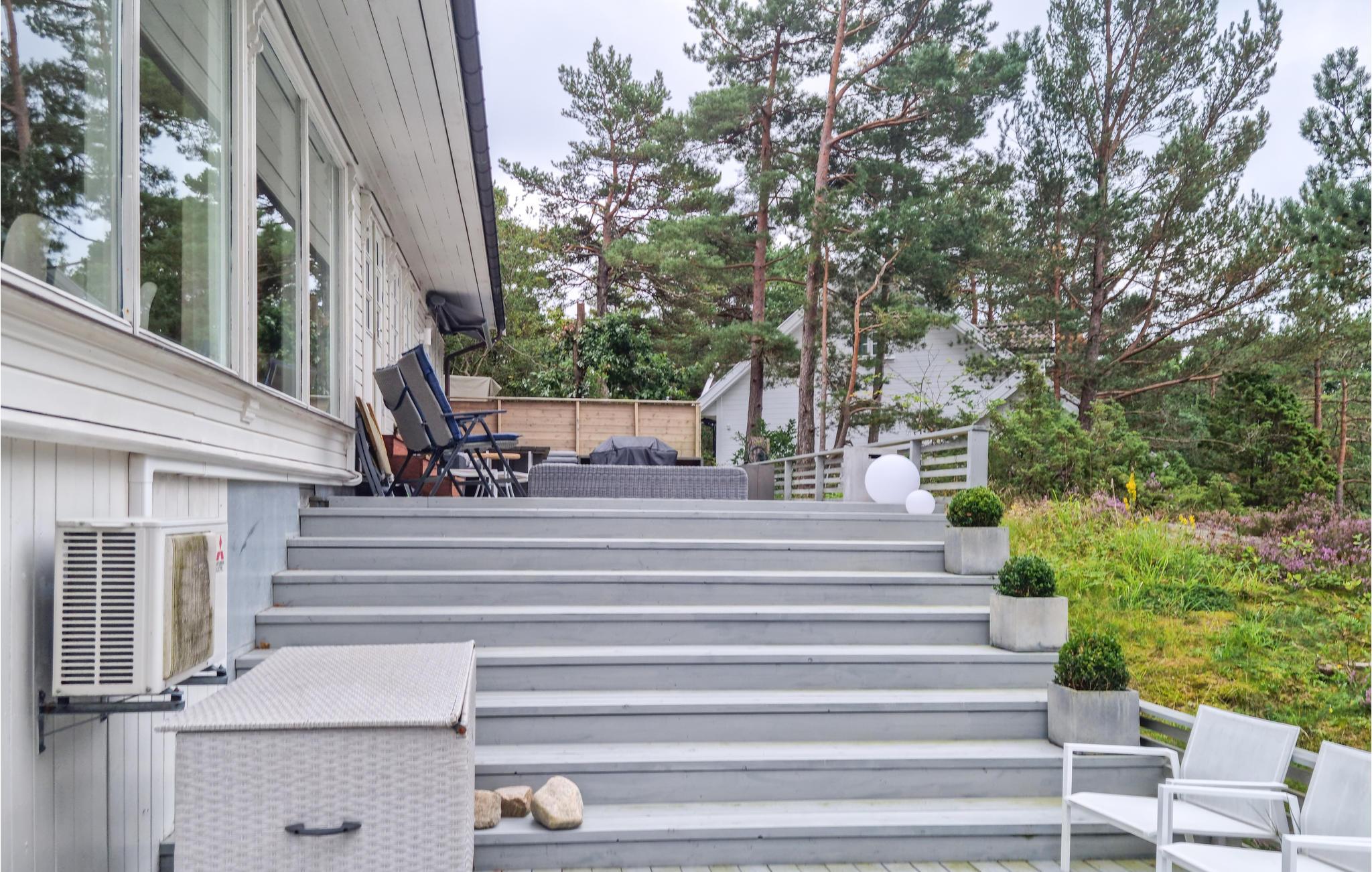 Reis med storfamilien eller flere vennefamilier til dette flotte feriehuset, som ønsker dere velkommen med svært god innredning og gjennomgående kvalitet. Bruk den store stuen som en sentral møteplass for familien og nyt panoramautsikten over terrassen og skjærgårdsnaturen. Mens de voksne setter seg godt til rette her om kvelden, kan de yngre arrangere filmkveld i 1. etasje. Sommerdager og -kvelder tilbringes utendørs av både store og små som nyter den solrike og barnevennlige eiendommen. Den store terrassen kombinerer kos og hygge med den vakre fjordnaturen.