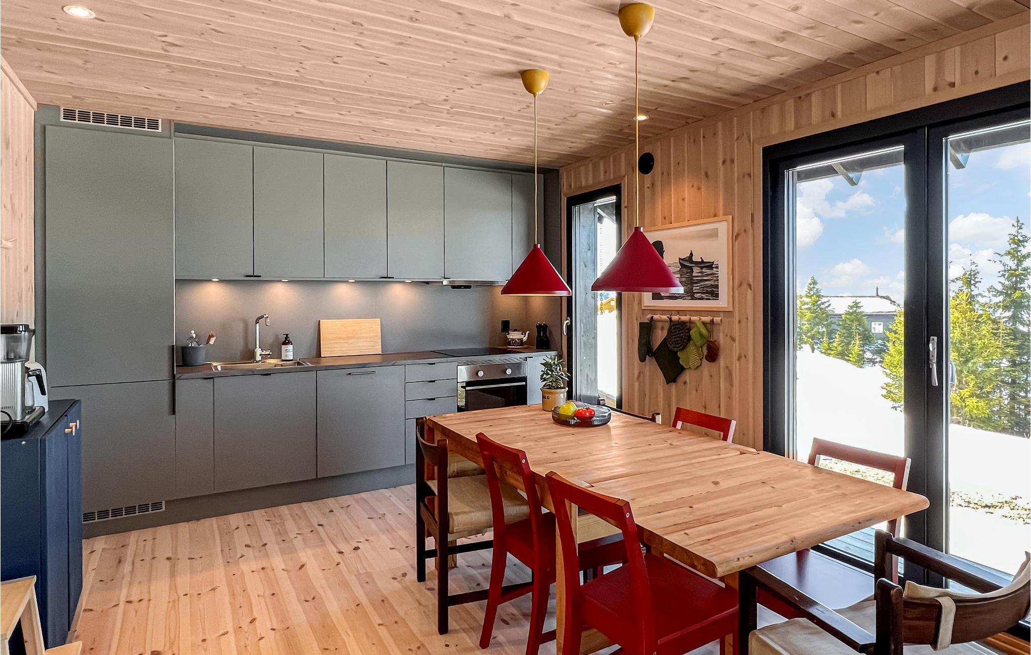 Luksusferiehus med romslige rom i nærheten av Hafjell. Med fire soverom er det nok plass til to vennlige familier som ønsker luksus i vakker natur. Kombinasjonen av moderne stil og norsk hyttesjarm gir huset en spesiell atmosfære. I løpet av dagen kan du kose deg med god mat ved det lange spisebordet under de røde lampene og planlegge familieutflukter i sofaområdet. De store vinduene gir en unik fjellutsikt. Etter en lang dag kan du skjemme deg bort i badstuen. Om kvelden kan du nippe til et glass musserende champagne ute for å feire den nødvendige familietiden i de eventyrlige fjellene. Fantastisk, ikke sant? Du finner flotte fotturer i området rundt hytta og langrenn rett utenfor døren.