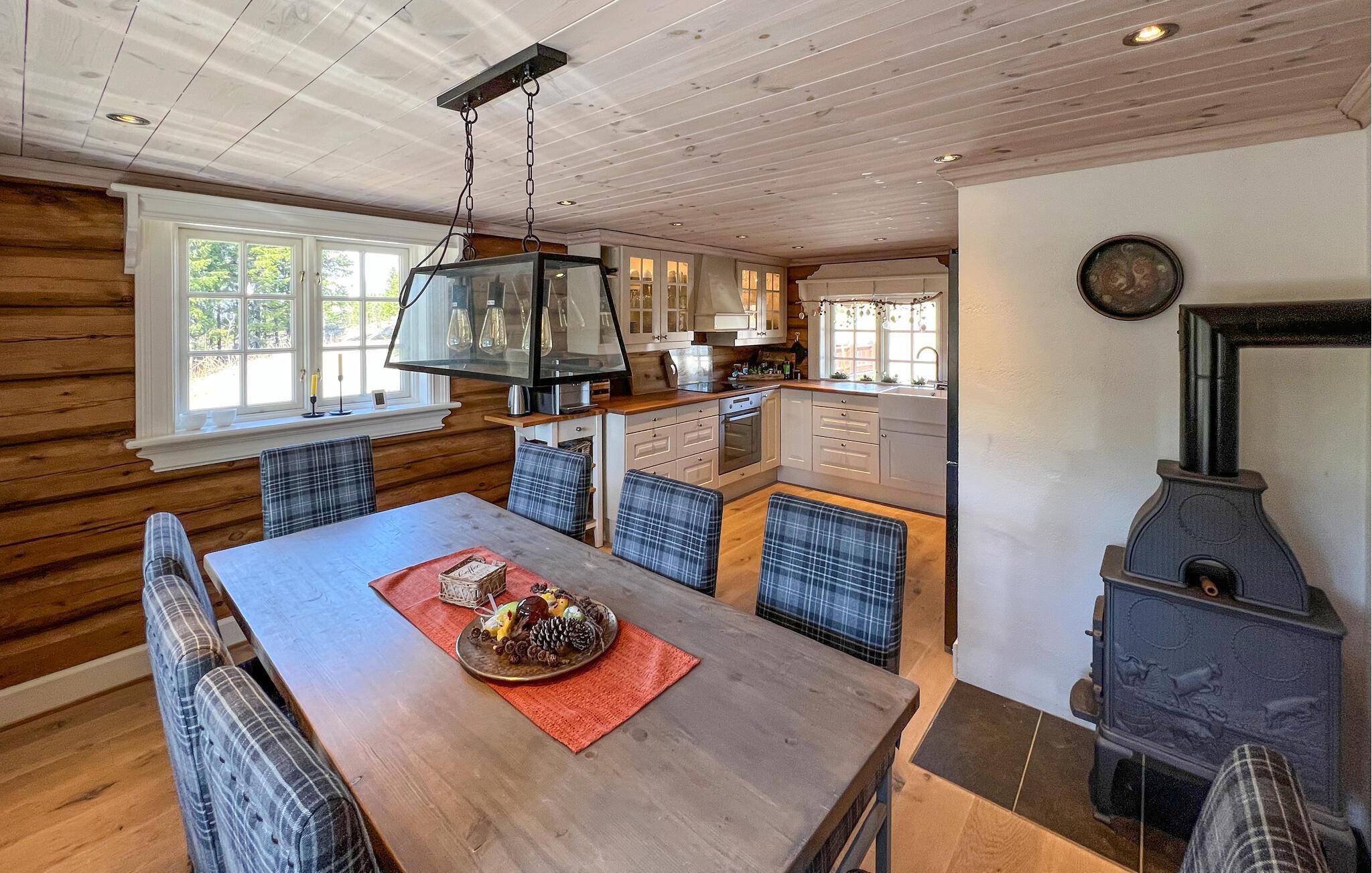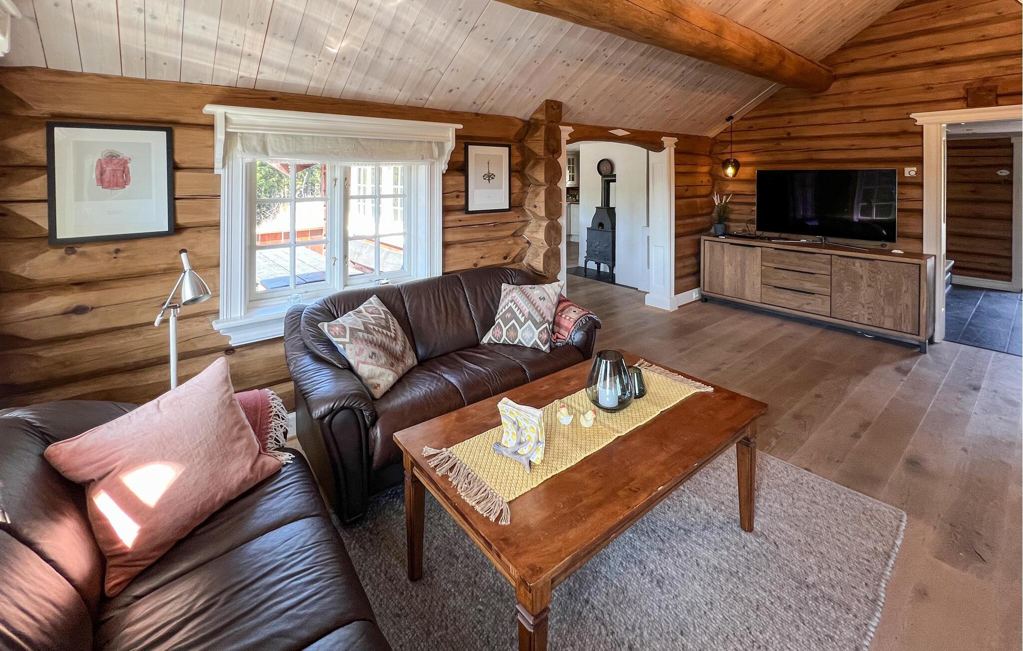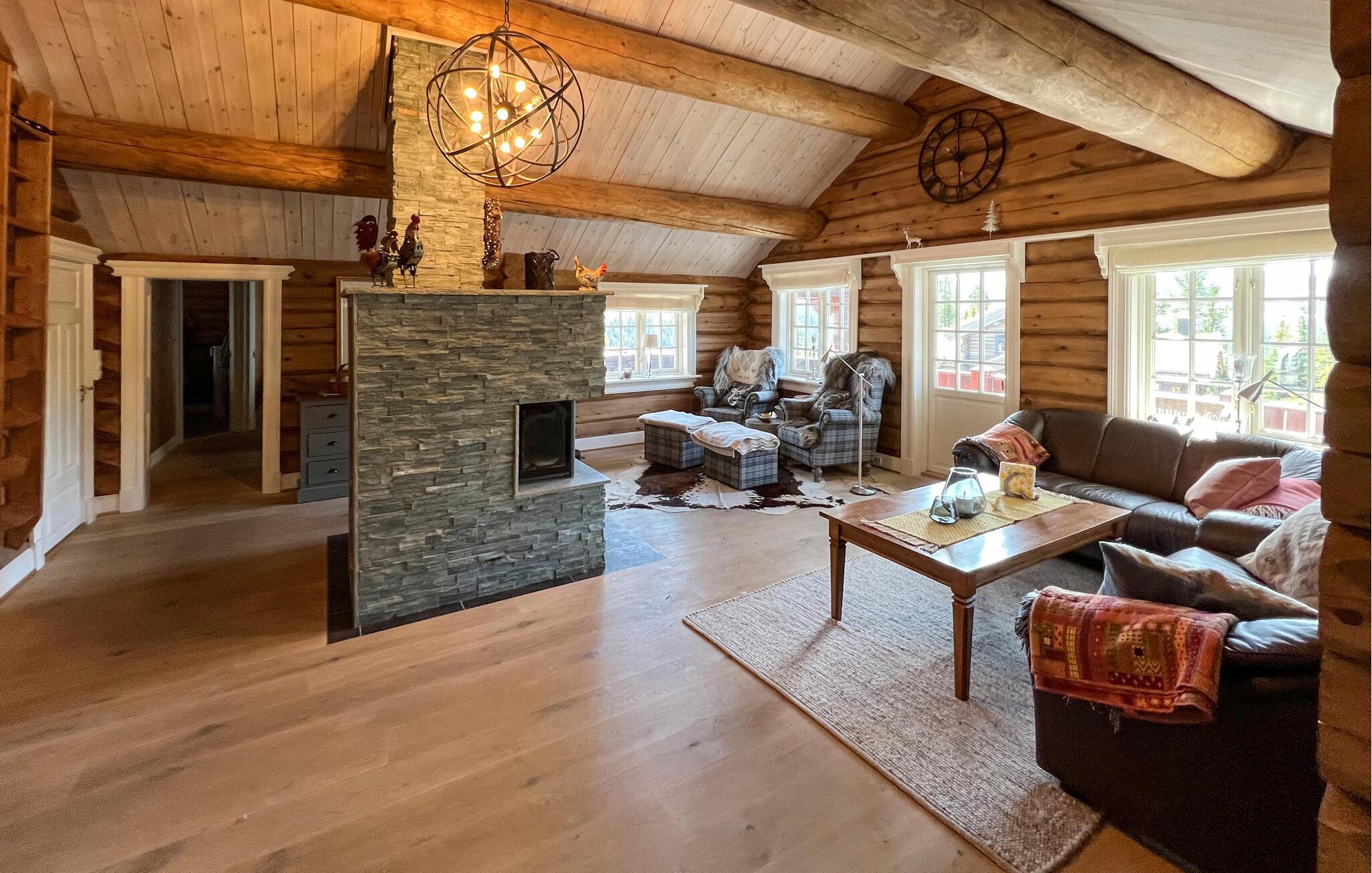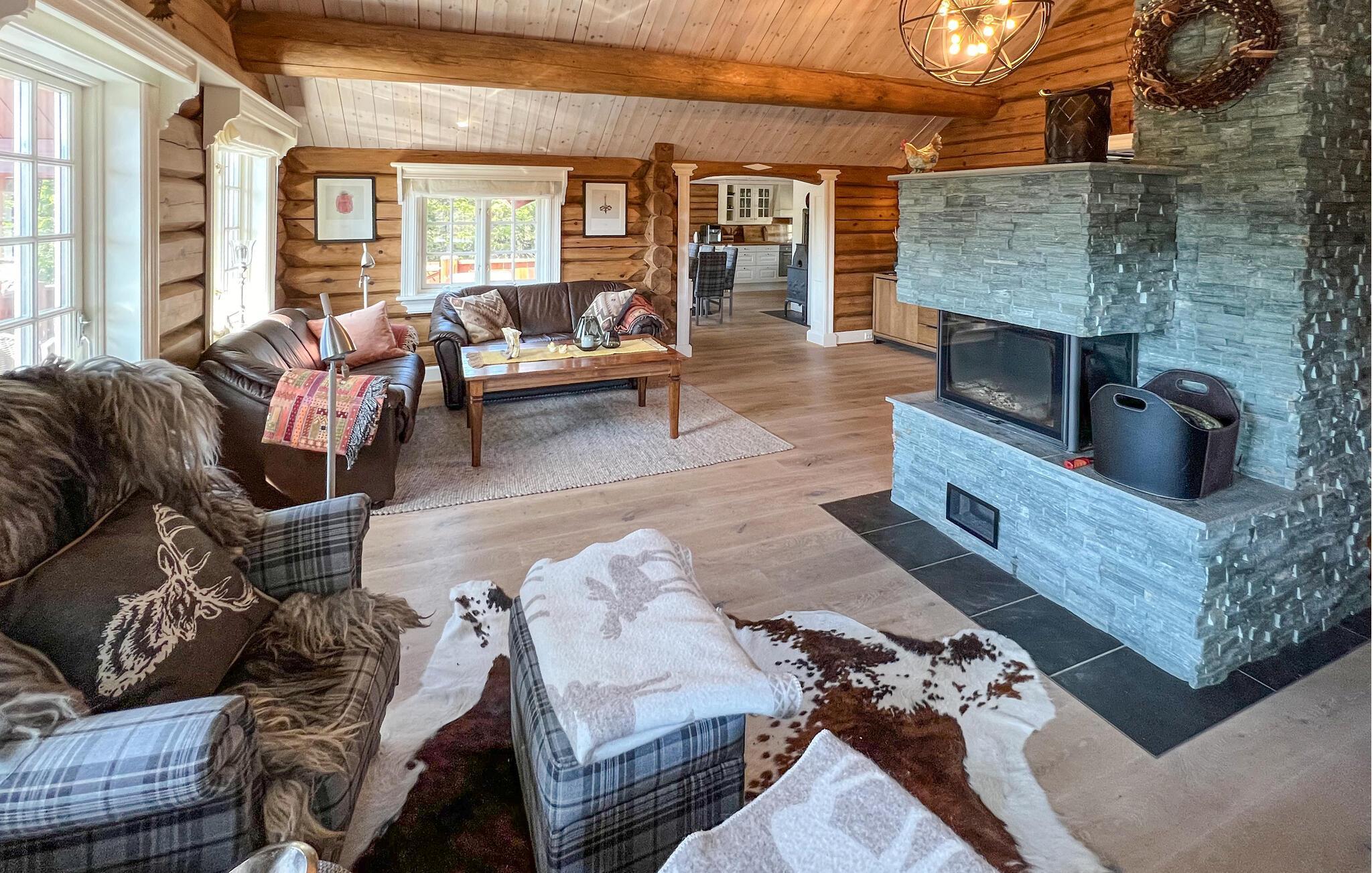 Beliggenheten i åssiden byr på en fantastisk utsikt over det norske fjellandskapet. Når du trer inn i feriehuset, vil du umiddelbart føle deg i fred. Interiøret er moderne og komfortabelt, med romslige oppholdsrom som innbyr til avslapning. Det åpne kjøkkenet er ideelt for koselige matlagingskvelder. Om kveldene kan du tenne opp i peisen og kose deg i sofaene med et kortspill.