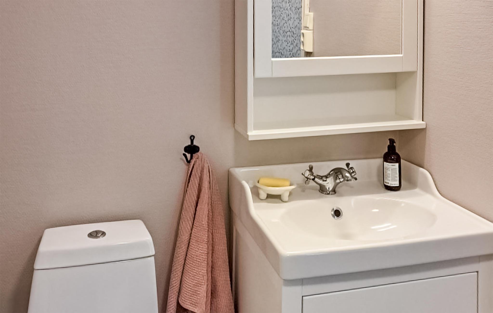 - WC med varmt og kaldt vann, Dusj