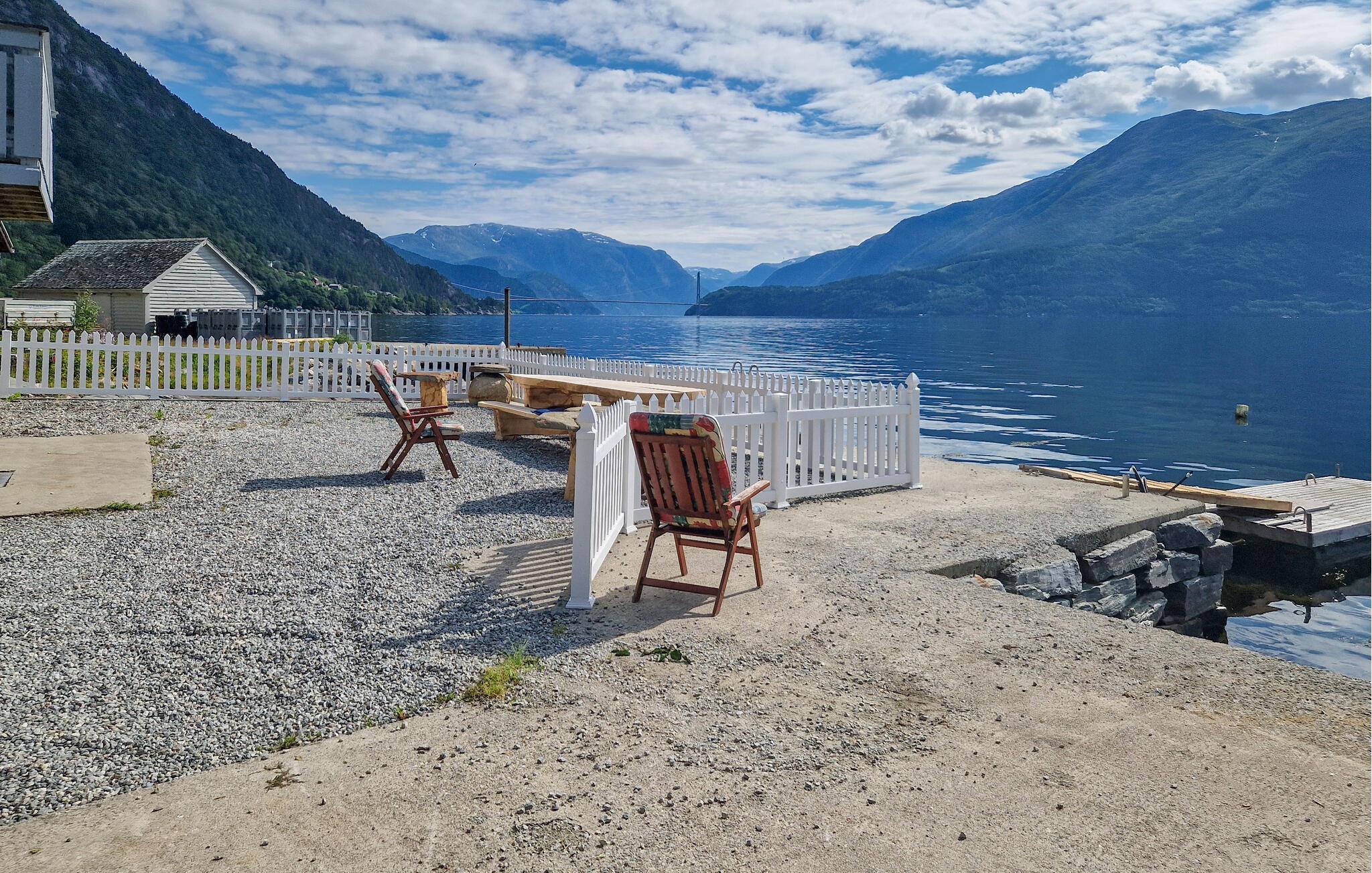 I Djønno, rett ved bredden av Hardangerfjorden, kan du beundre den fantastiske utsikten over fjorden fra både huset og de romslige uteområdene. Slapp av på den koselige terrassen eller på den private bryggen mens bølgene skvulper forsiktig mot fjæra. Du kan også bade her. Benytt anledningen til å forfriske deg i fjorden hver dag. Eller prøv fiskelykken direkte fra brygga. Her er det mange muligheter for å fange fersk fisk. Du kan også gå lange turer i det rolige fjellandskapet eller leie en kajakk og utforske fjorden fra vannet.