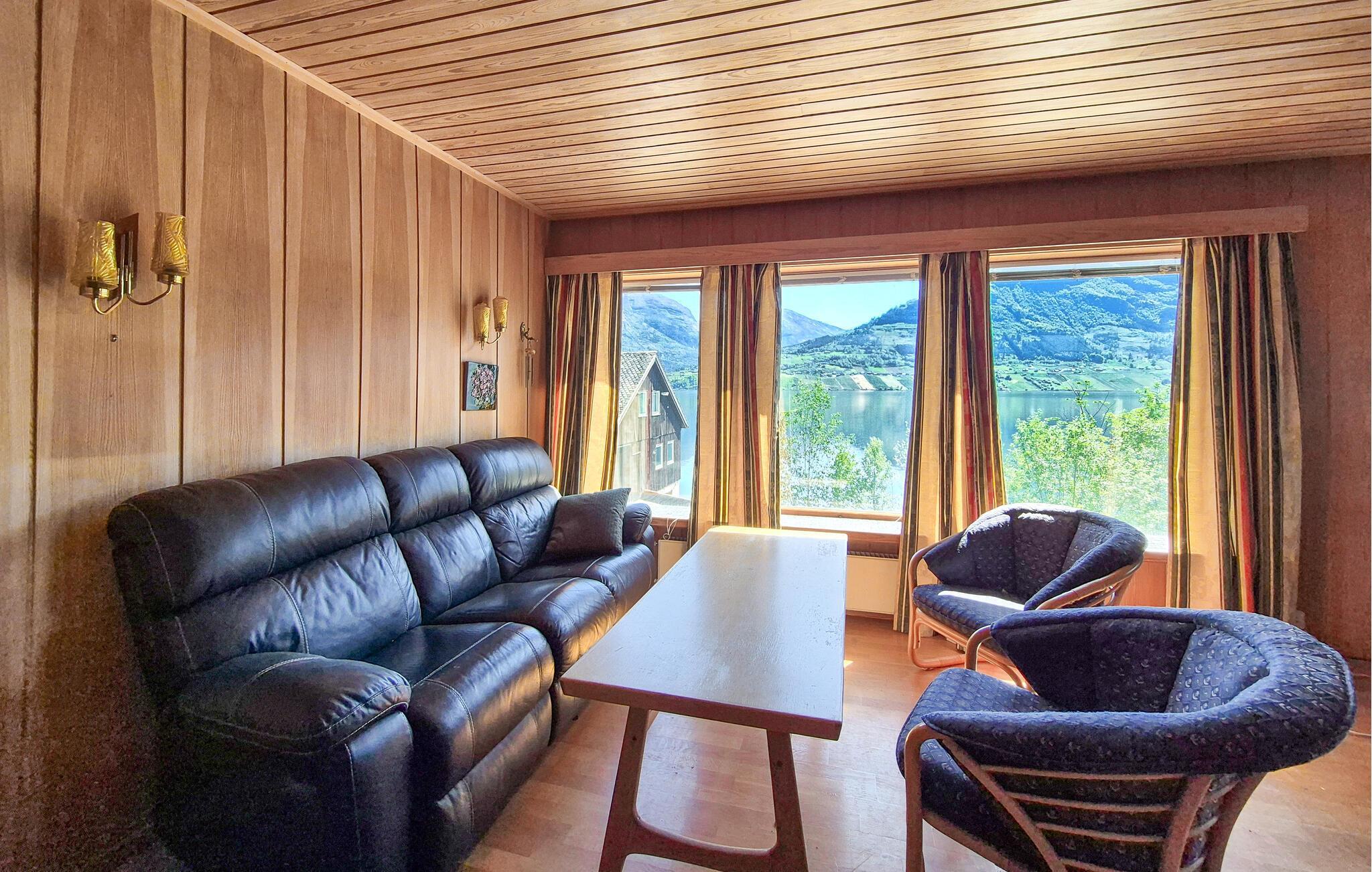 Ferieleiligheten i tradisjonell stil byr på ideelle forhold for en avslappende ferie ved vannet. Du bor i en liten landsby i Hardanger, rett ved bredden av den imponerende Hardangerfjorden. Den koselig innredede leiligheten har en fantastisk utsikt over vannet og de omkringliggende fjellene gjennom de store vinduene. Sett deg godt til rette i sofaen foran peisen i stuen, lag mat sammen på det elegante kjøkkenet og nyt måltidene i den vakre spiseplassen med utsikt.
