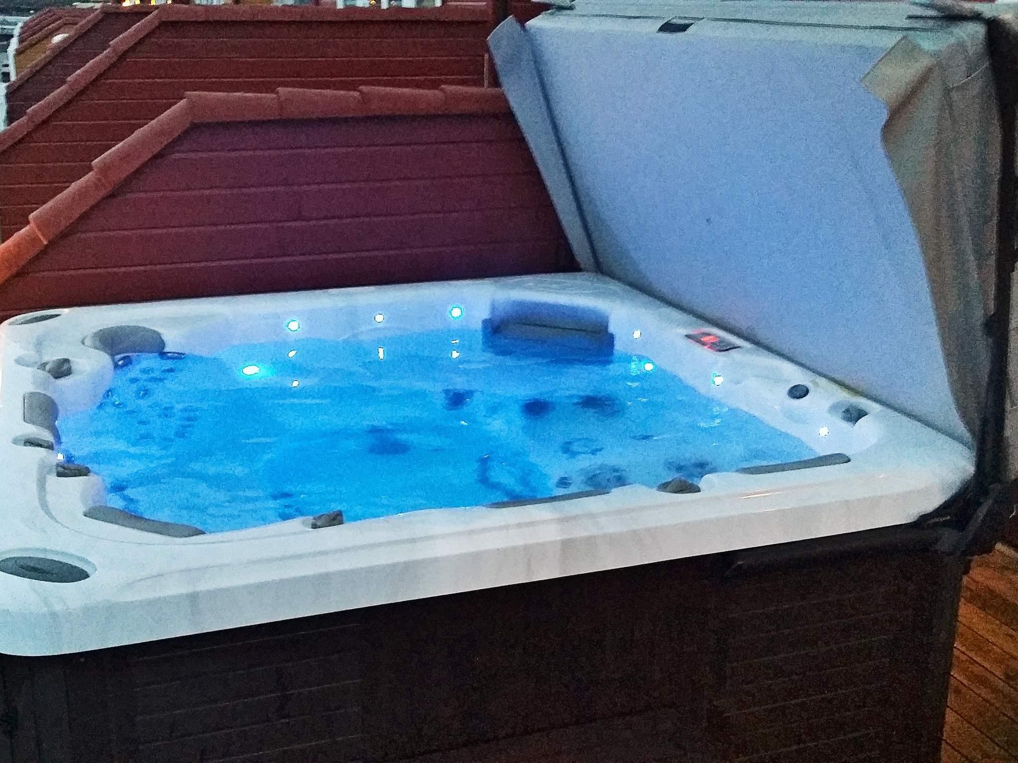 Feriehuset med flott beliggenhet ved fjorden, stor terrasse og panoramautsikt over vannet og det nydelige landskapet. På terrassen er det utendørs boblebad/massasjebad for 6 personer hvor man virkelig kan nyte ferielivet.