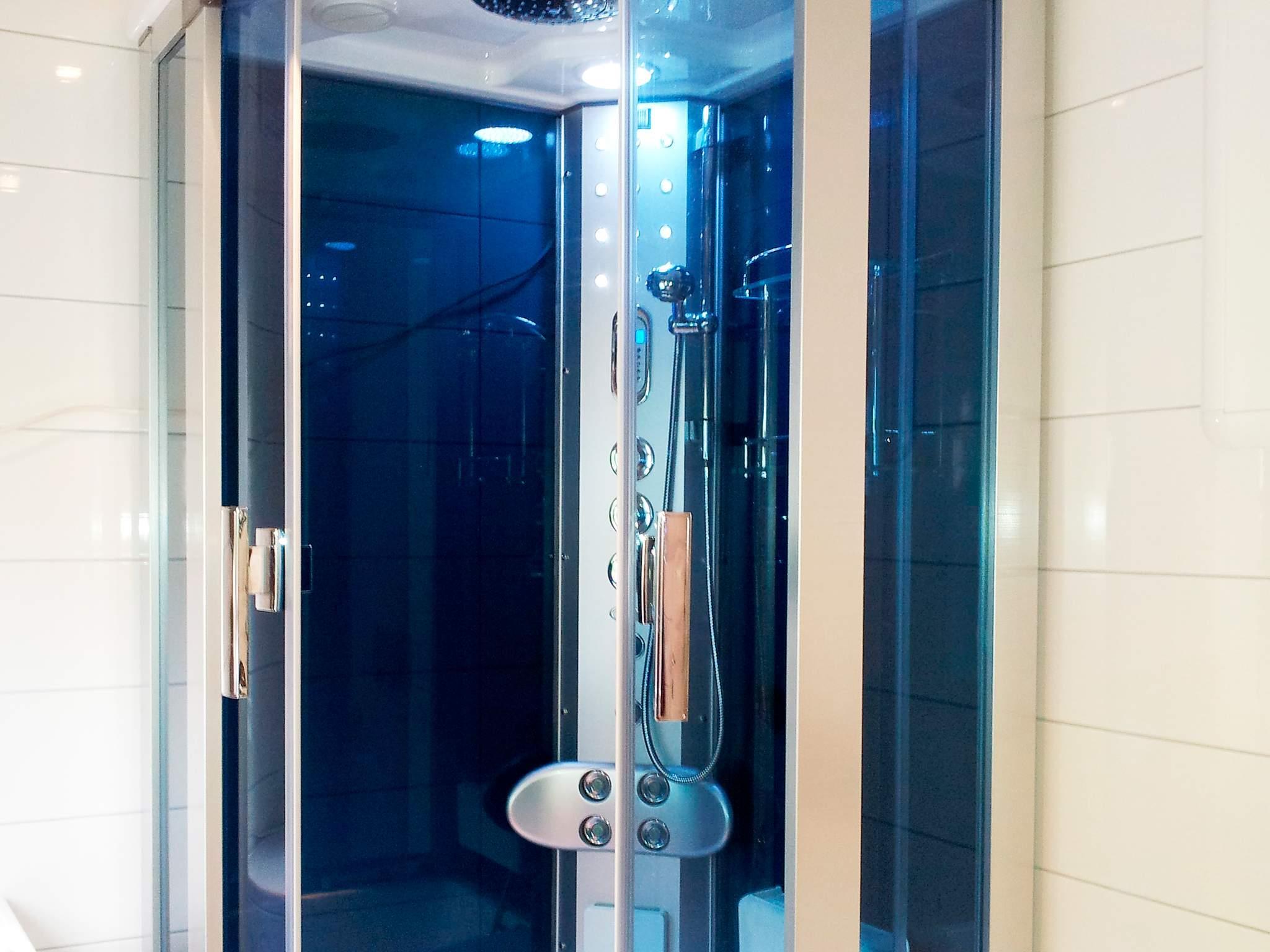 Bad/WC: vaskemask., tørketrommel, WC, håndvask, steamdusj, gulvvarme