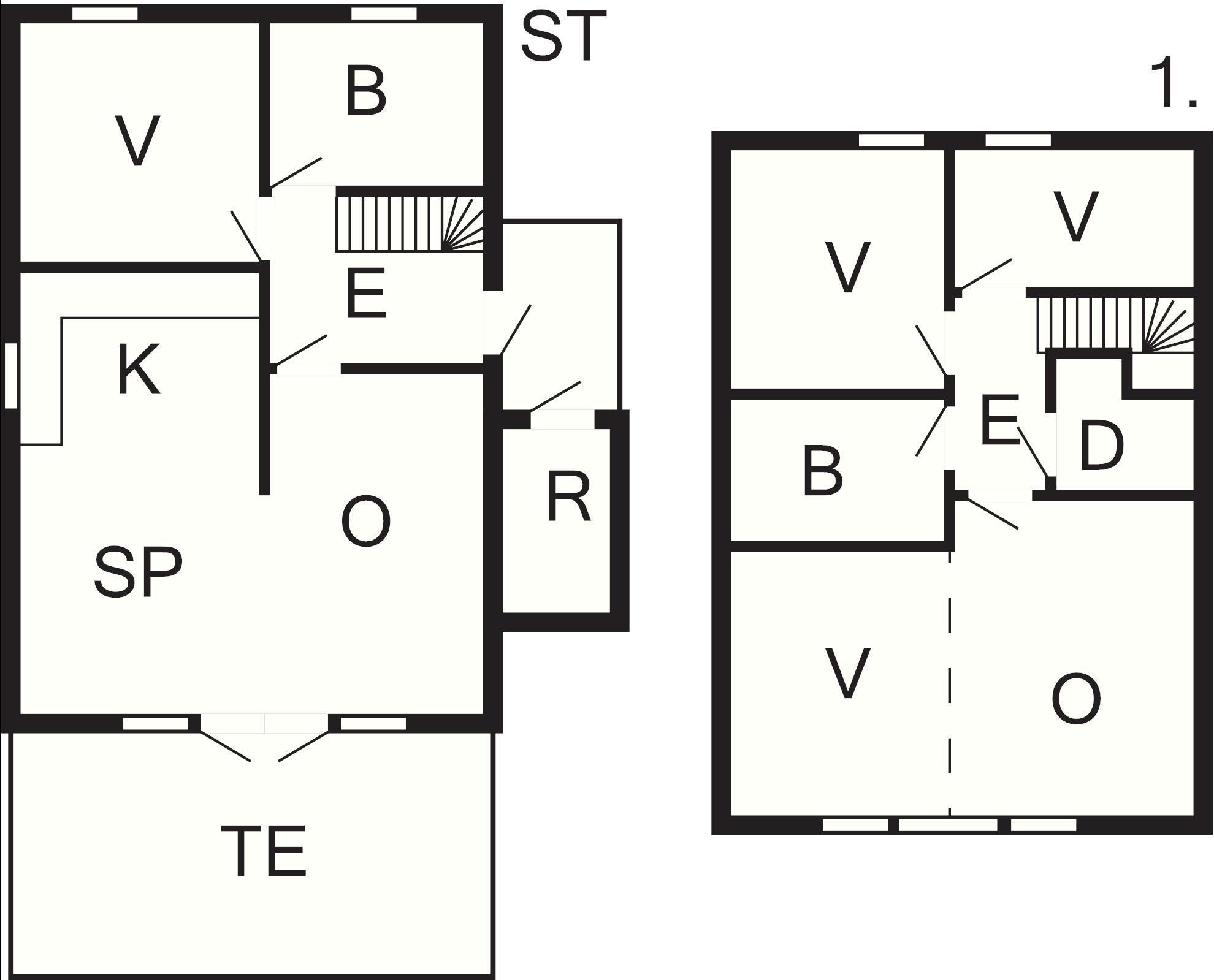 4 Soverom: (1DS)+(2S)+(2S)+(2S)