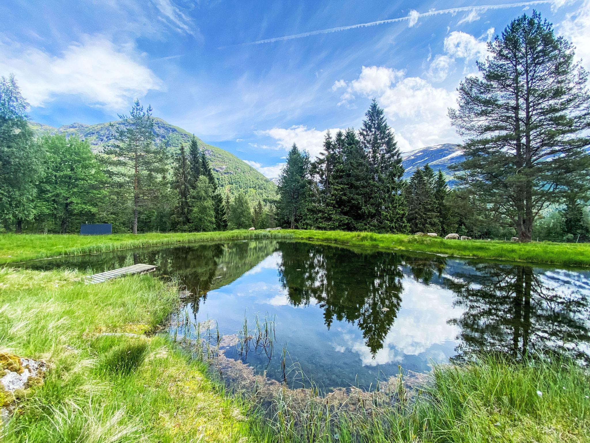 Beautiful timber house "Fjellro". 21 km from the centre of Viksdalen, 38 km from the centre of Førde, 1 km from the lake. Private: property with meadow, pond. Rowing boat (Local agreement), parking at the house at 150 m. Shop 21 km, supermarket 38 km, bus stop "Gjerland" 600 m, ferry "Bergen" 200 km, sandy beach 1 km. Fishing possibilities 100 m. Please note: Loading and unloading of baggage is possible at the holiday house. Animals in the neighbourhood.
