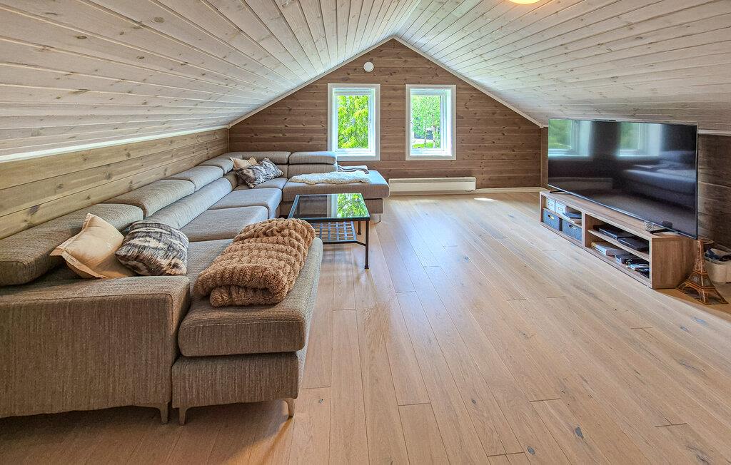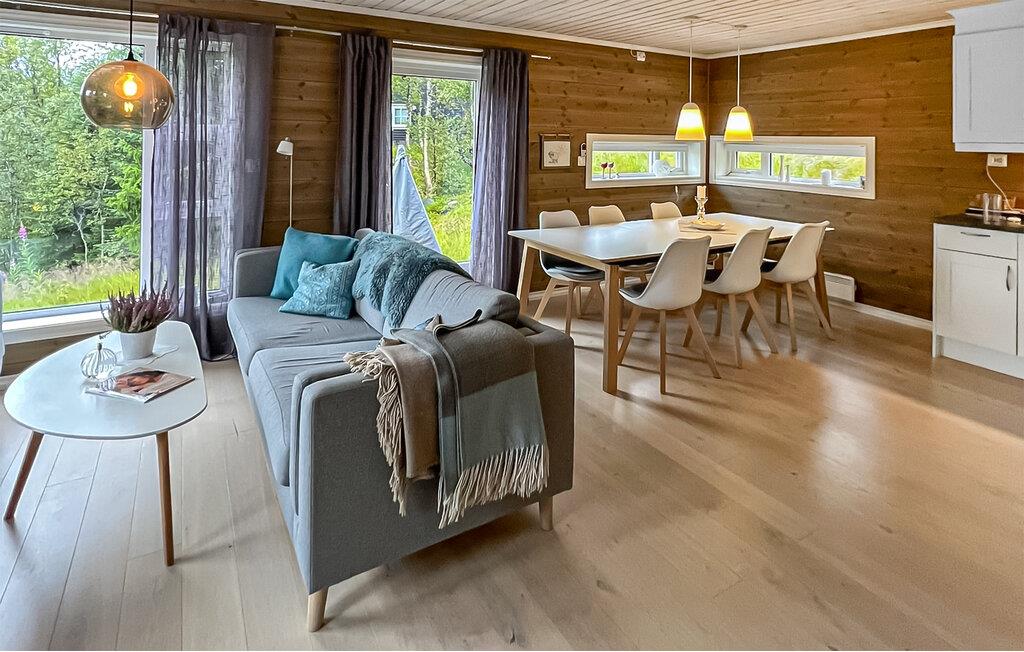 Dette koselige feriehuset ønsker deg velkommen med en innbydende atmosfære av hygge og komfort. Store vinduer slipper inn rikelig med naturlig lys, mens varmt treverk og stilfulle møbler skaper en avslappende atmosfære der du raskt kan lade batteriene. På kjøligere dager kan du tenne opp i vedovnen og kose deg i de komfortable lenestolene med en god bok.