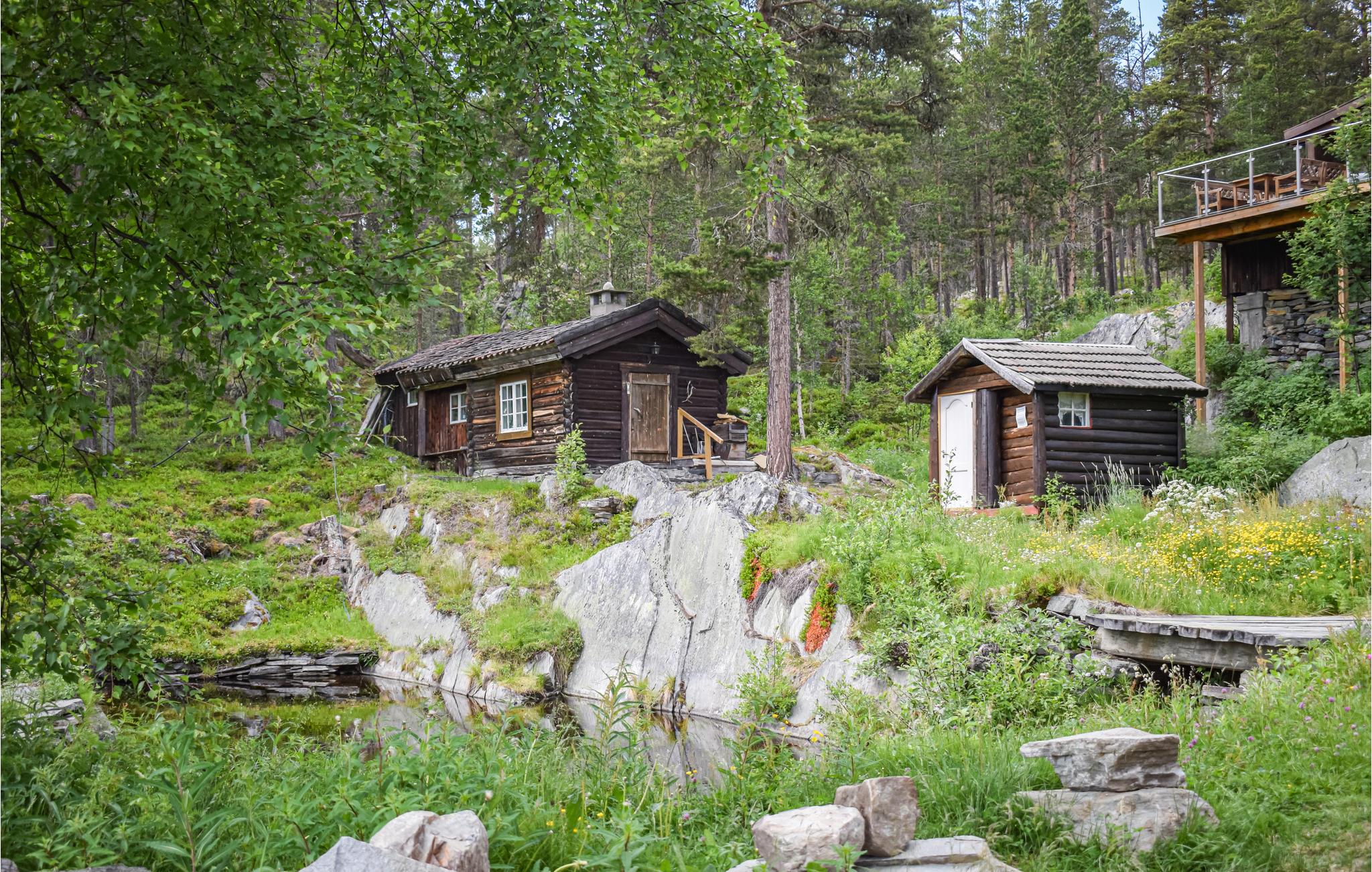 Denne vakre hytta ligger på gården Bakketun, høyt og fritt over Sjoa-juvet.