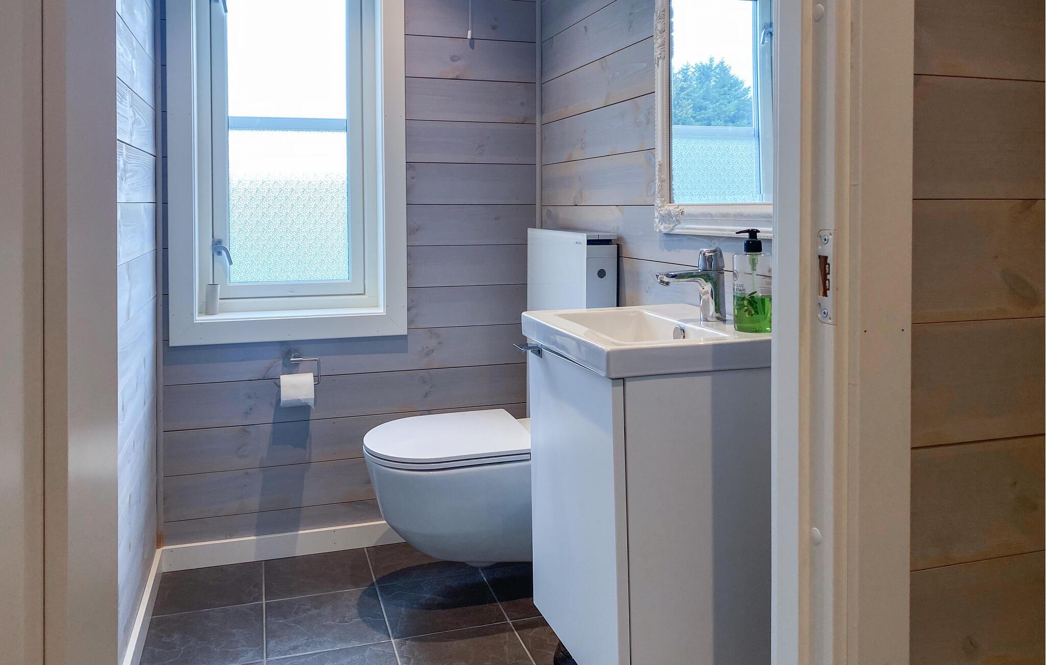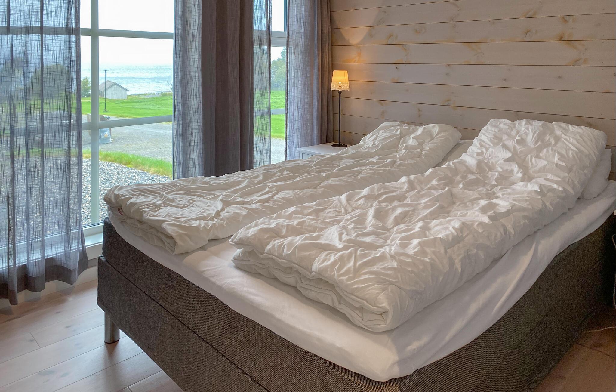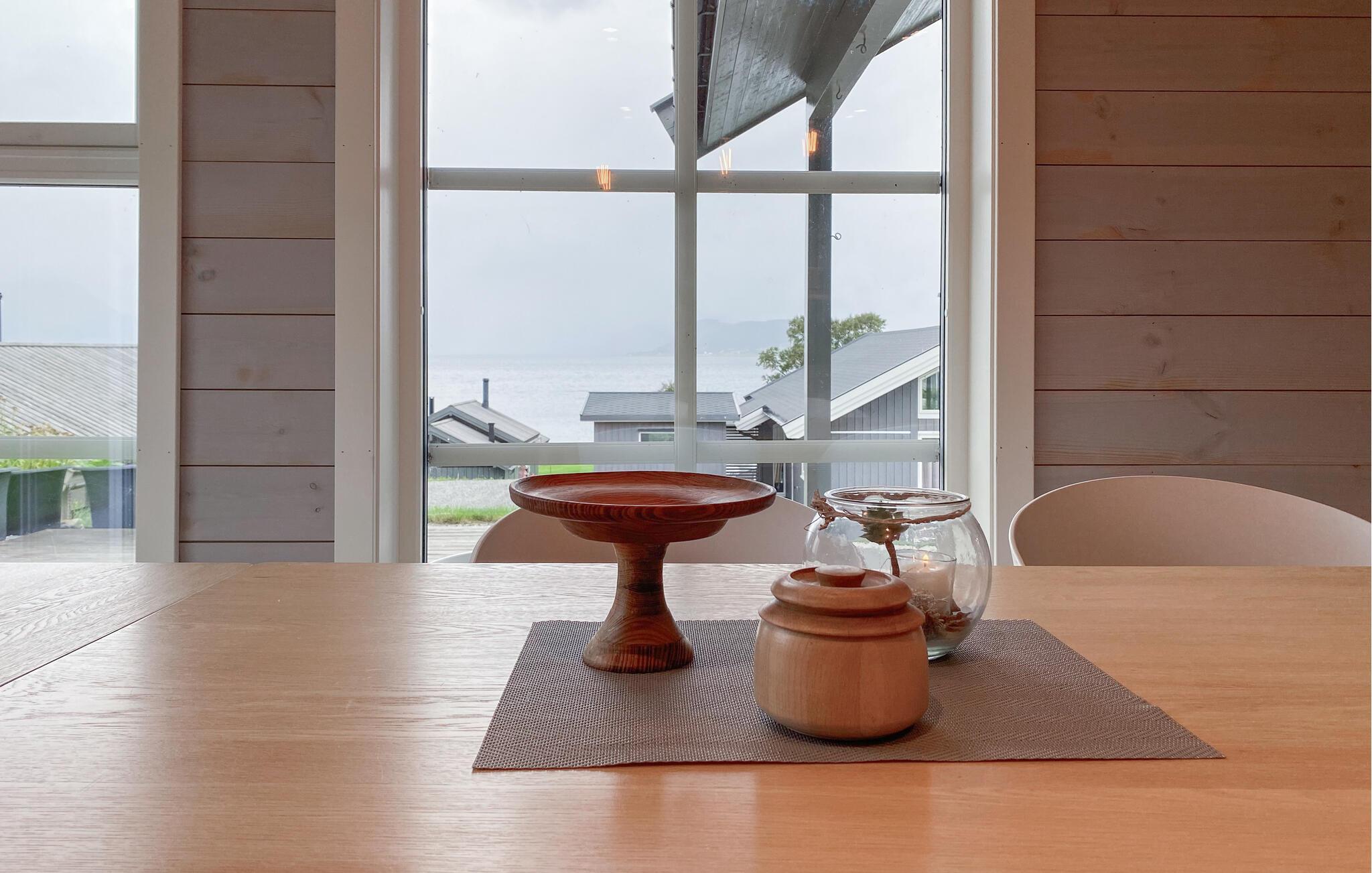 Opplev ren avslapning i dette stilfullt innredede feriehuset i Hildre. Den store vindusfronten slipper inn rikelig med lys og gir deg en fantastisk utsikt over vannet. Nyt komforten i de moderne møblene og tilbring koselige timer i den åpne planløsningen. På den romslige terrassen kan dere nyte måltider sammen utendørs og kjenne den friske sjøluften - et ideelt sted for å slappe av og nyte naturen til fulle.