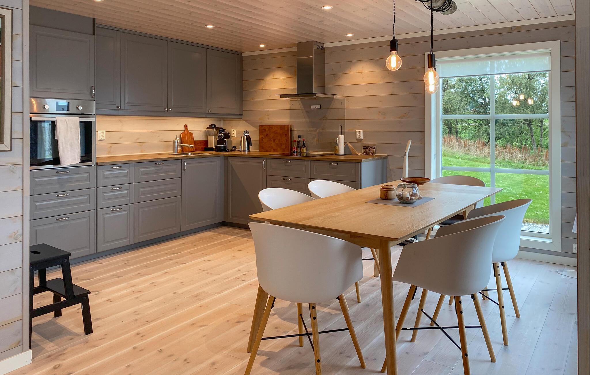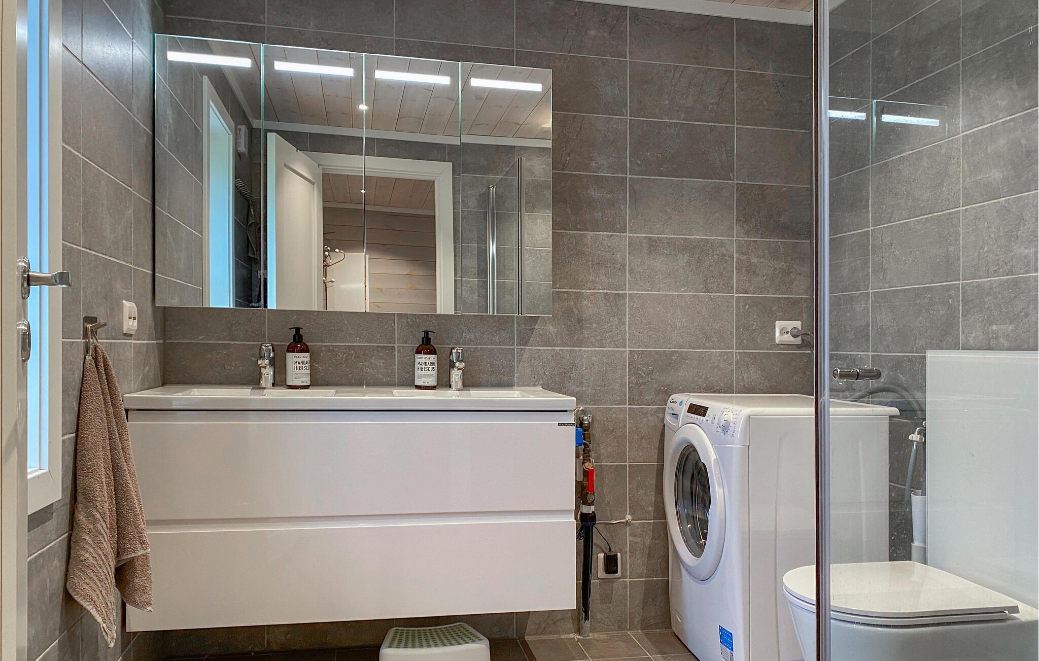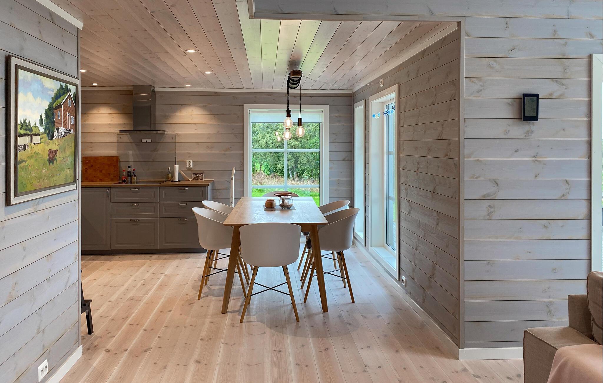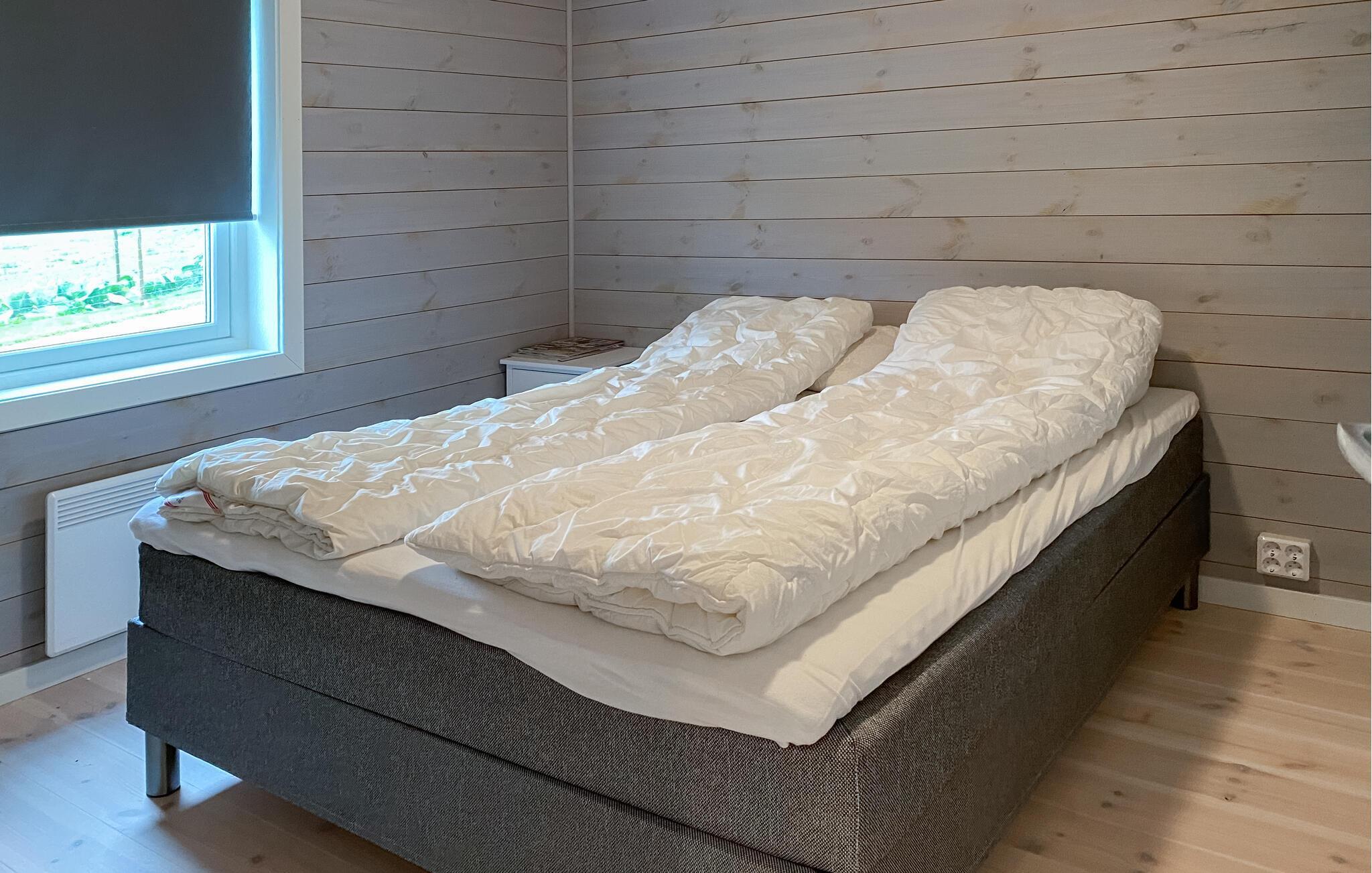 Opplev ren avslapning i dette stilfullt innredede feriehuset i Hildre. Den store vindusfronten slipper inn rikelig med lys og gir deg en fantastisk utsikt over vannet. Nyt komforten i de moderne møblene og tilbring koselige timer i den åpne planløsningen. På den romslige terrassen kan dere nyte måltider sammen utendørs og kjenne den friske sjøluften - et ideelt sted for å slappe av og nyte naturen til fulle.