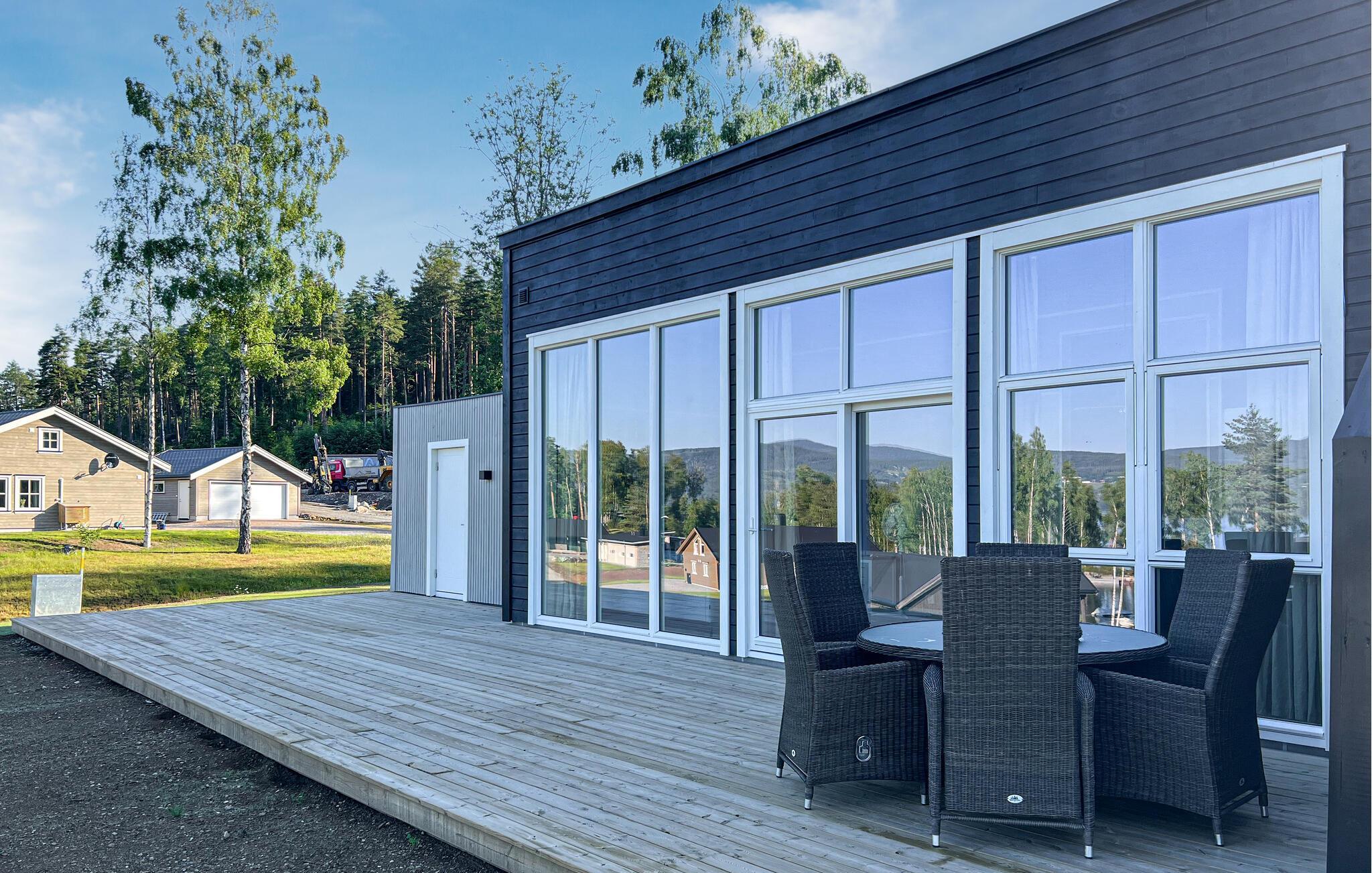Dette komfortable feriehuset er omgitt av et pittoresk naturlandskap, og ønsker deg velkommen med en fantastisk utsikt over innsjøen. Stig inn i det lyse, vennlige interiøret og la deg inspirere av de stilfulle møblene. Tilbered deilige måltider på det moderne, fullt utstyrte kjøkkenet, og nyt dem sammen i den koselige atmosfæren i det åpne oppholdsrommet. Etter en aktiv dag kan du tenne opp i vedovnen og slappe av med en spennende film i den koselige sofaen.