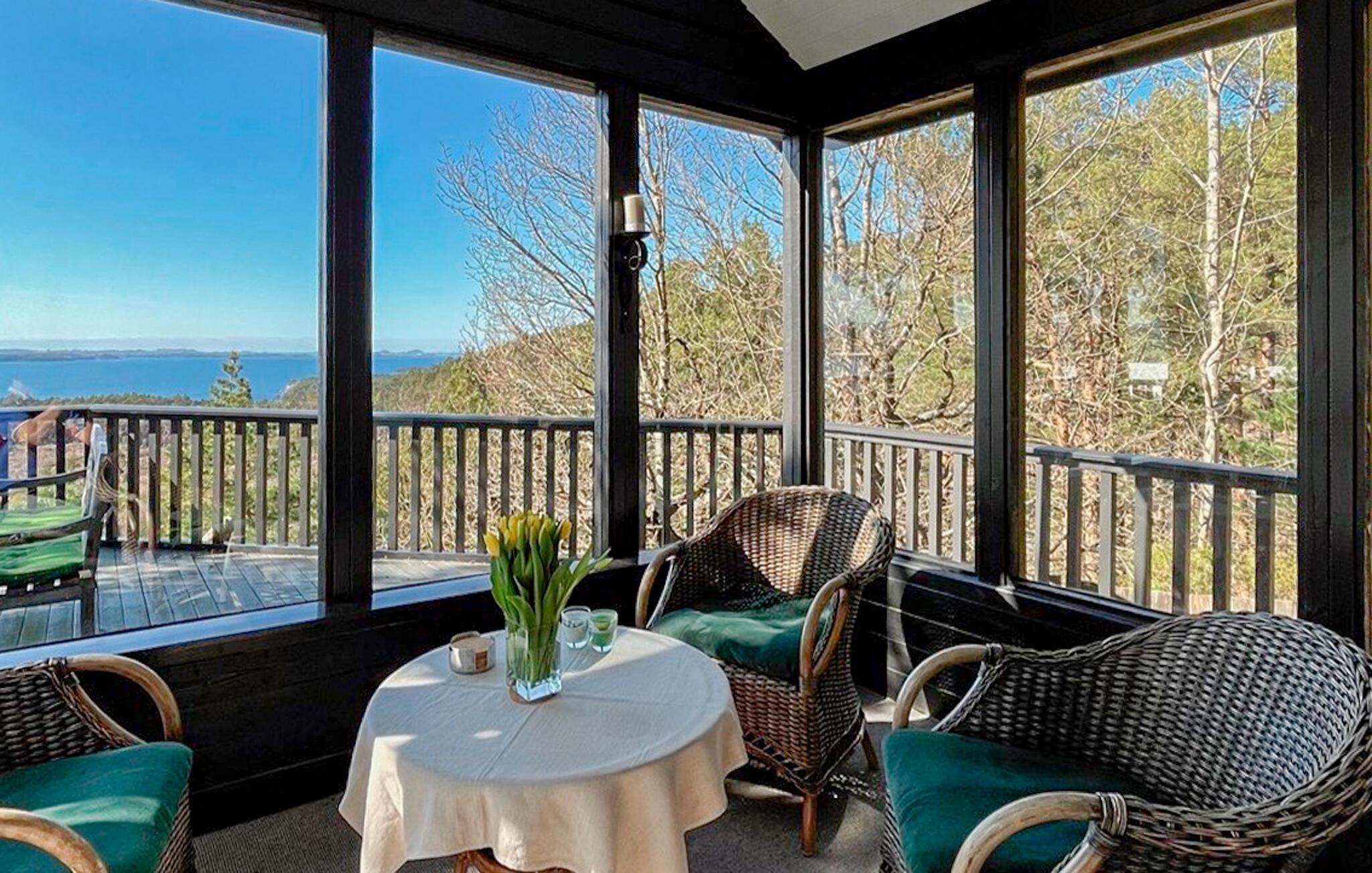Avhengig av været kan du la blikket vandre over fjorden i det innglassede området eller på den åpne terrassen og glede deg til uforglemmelige solnedganger.