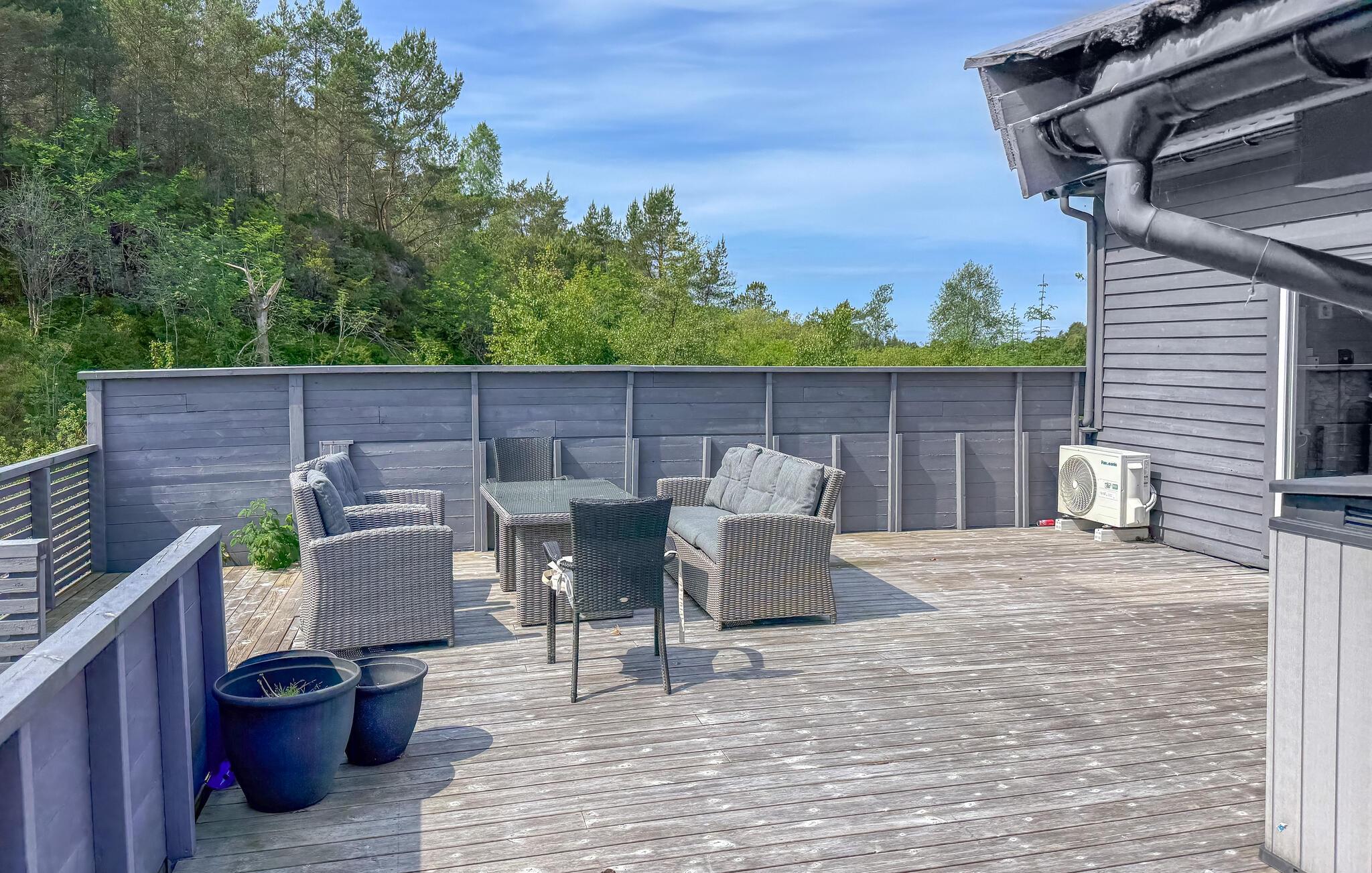 Tilbring en avslappende ferie i dette feriehuset med panoramautsikt og nærhet til fjorden.