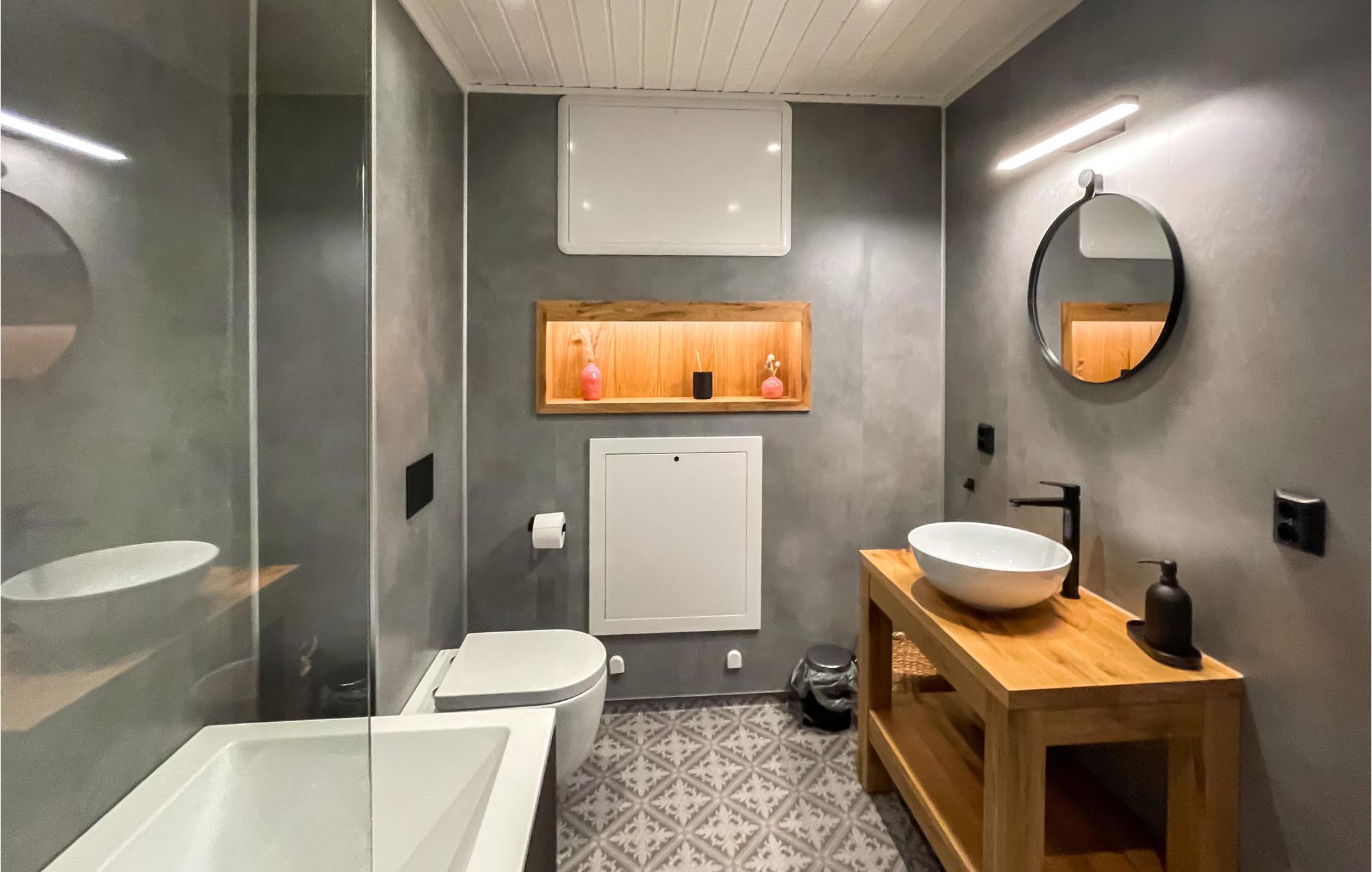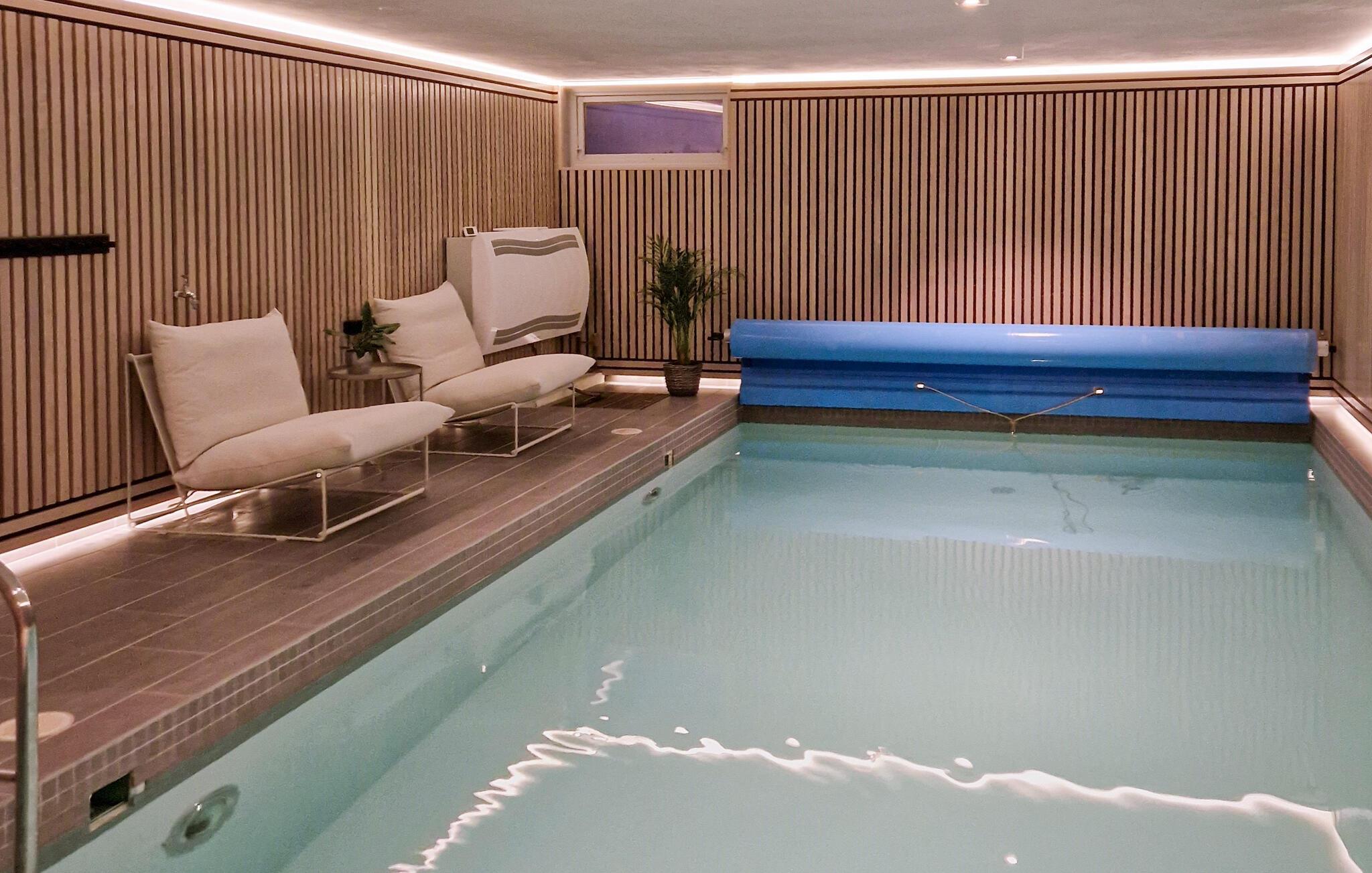 Oppdag badstuen og det oppvarmede bassenget med direkte tilgang fra huset. Bassengområdet er moderne og svært innbydende, noe som gjør badeglede og avslapning til en topp prioritet her. Her kan du ta deg en svømmetur eller slappe av mens barna leker.