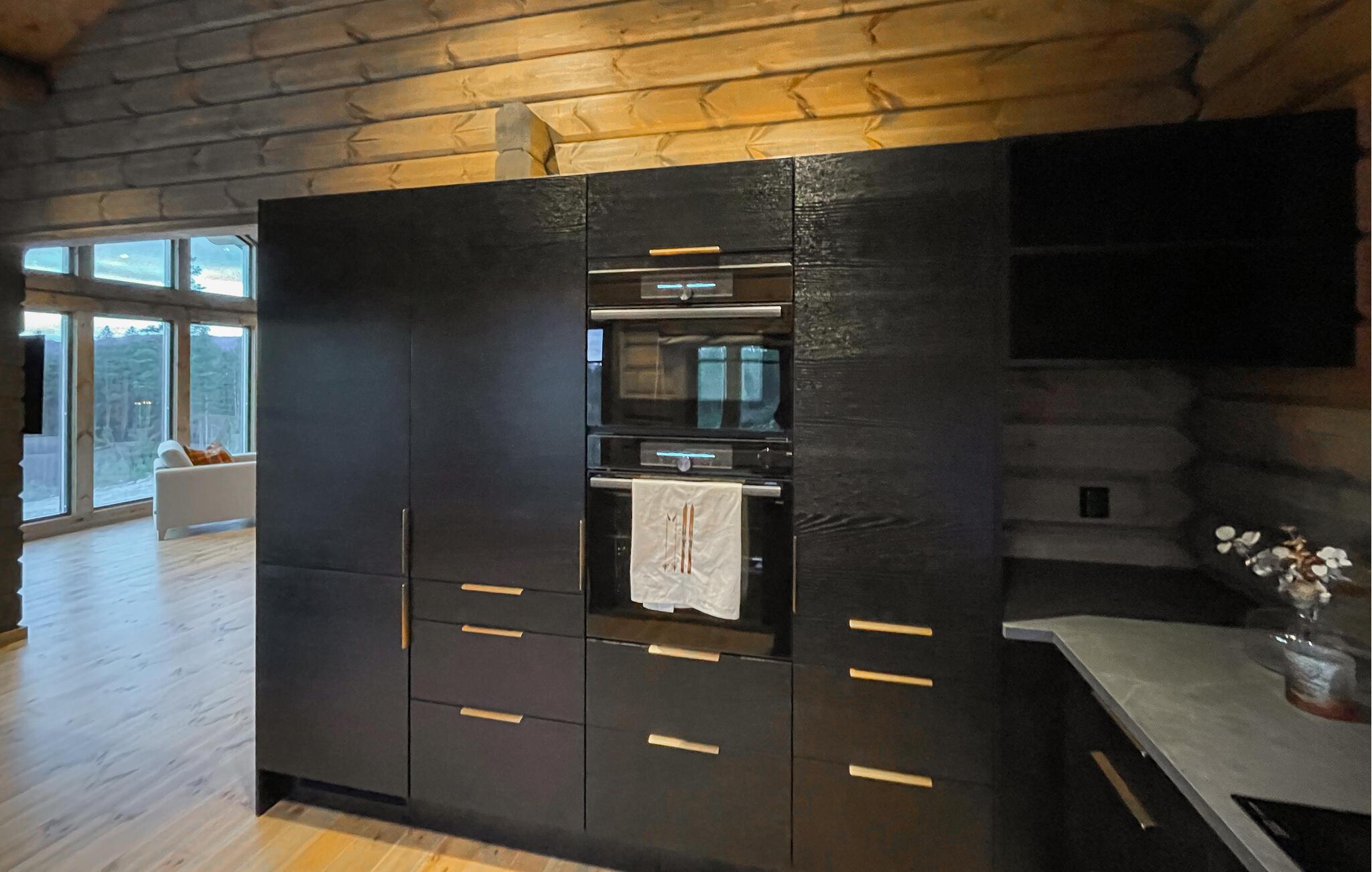 Dette romslige og moderne feriehuset er det perfekte tilfluktsstedet for familier og grupper. Det stilfulle interiøret tilbyr alt du trenger for en avslappende ferie. Den lyse stuen med komfortable møbler innbyr til opphold, mens det velutstyrte kjøkkenet inspirerer til å lage mat sammen. Nyt en kveldsbrann mens du sitter i sofaen eller lenestolene og ser ut over landskapet gjennom de store vinduene.