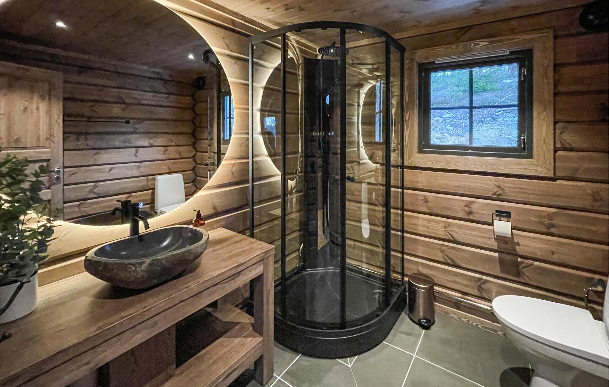 Nyt den moderne hyggen i dette store feriehuset omgitt av fantastisk natur.