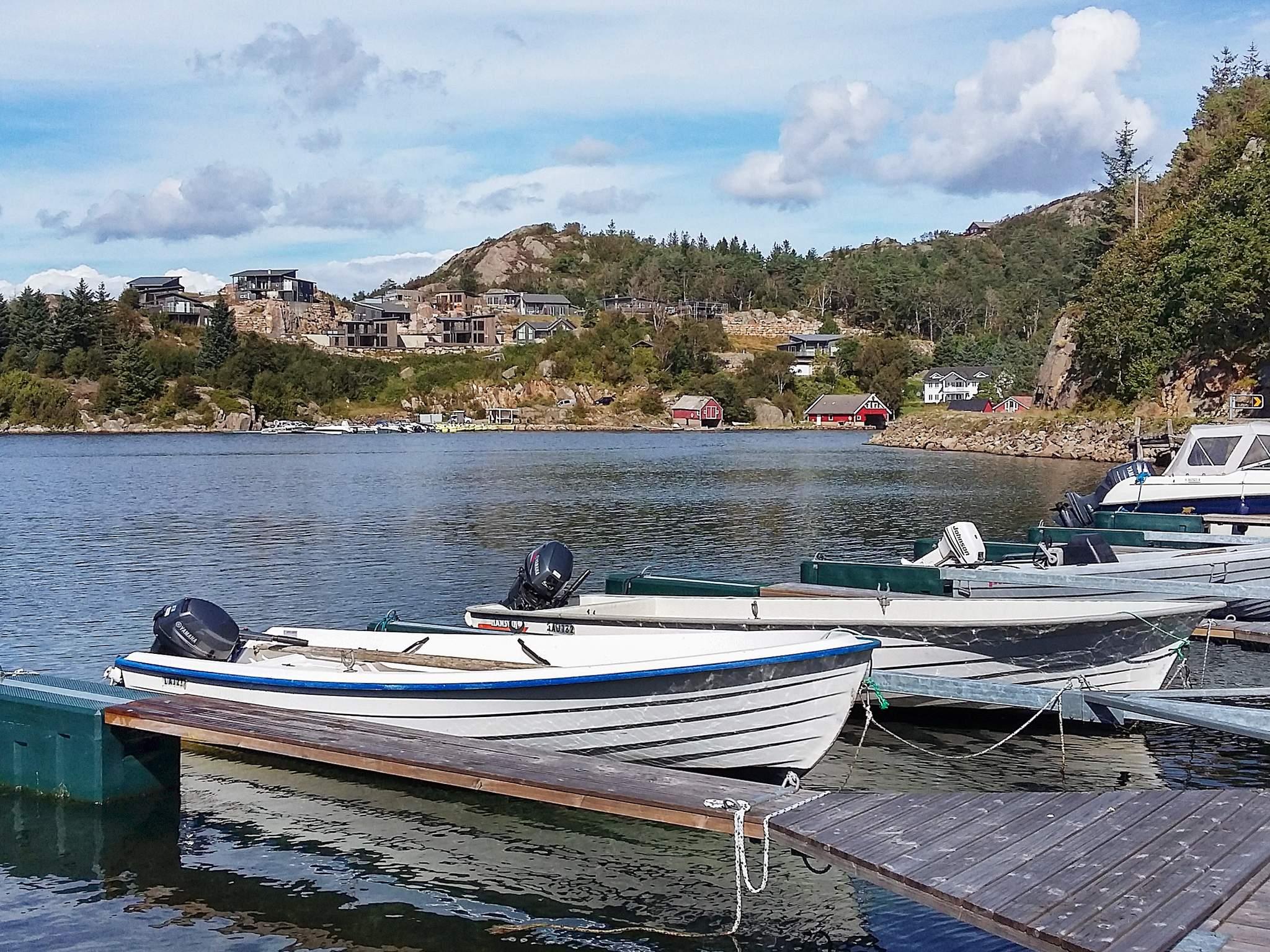 Eier har båtplasser til 3 båter som ligger i nytt bryggeanlegg ca. 400 meter fra hyttene. Det er parkeringsplass i nærheten av båtplassene.