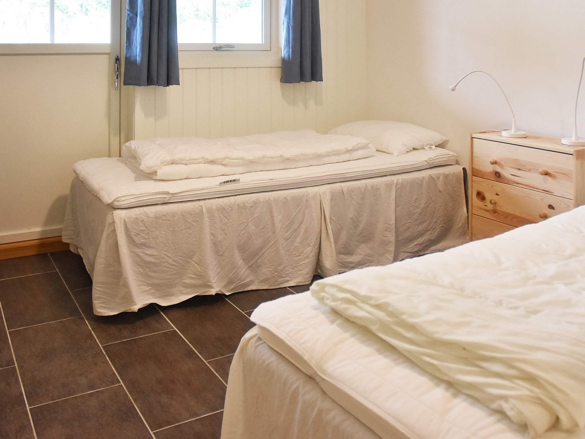 Rorbuen er den midterste av tre rorbuer, og har overbygd veranda i begge etasjene. De to andre rorbuene er feriehus nr. 56572, og huseiers private rorbu. Gratis internett for surfing, lav hastighet, så ingen streaming. Det er varmekabler i alle gulv i 1. etasje, og to av soverommene har dør ut til en overbygd terrasse. To av soverommene har to 90 cm brede sammensettbare enkeltsenger. Det ene av disse to soverommene har et forheng inn til naborommet som har en 120 cm bred dobbeltseng med en 90 cm bred overkøye. Rorbua passer for best for maks 4 voksne og 2 barn opptil 12 år.