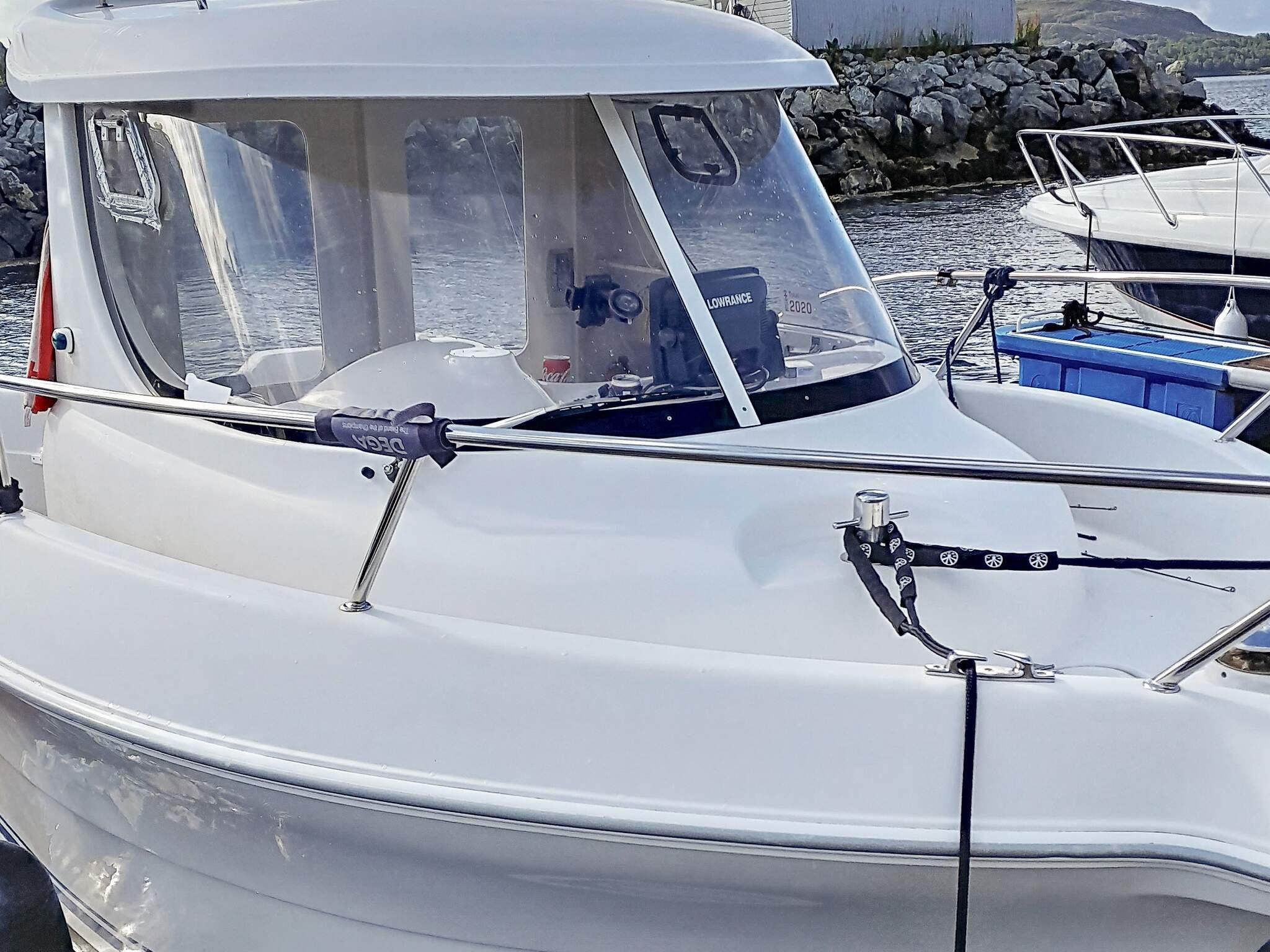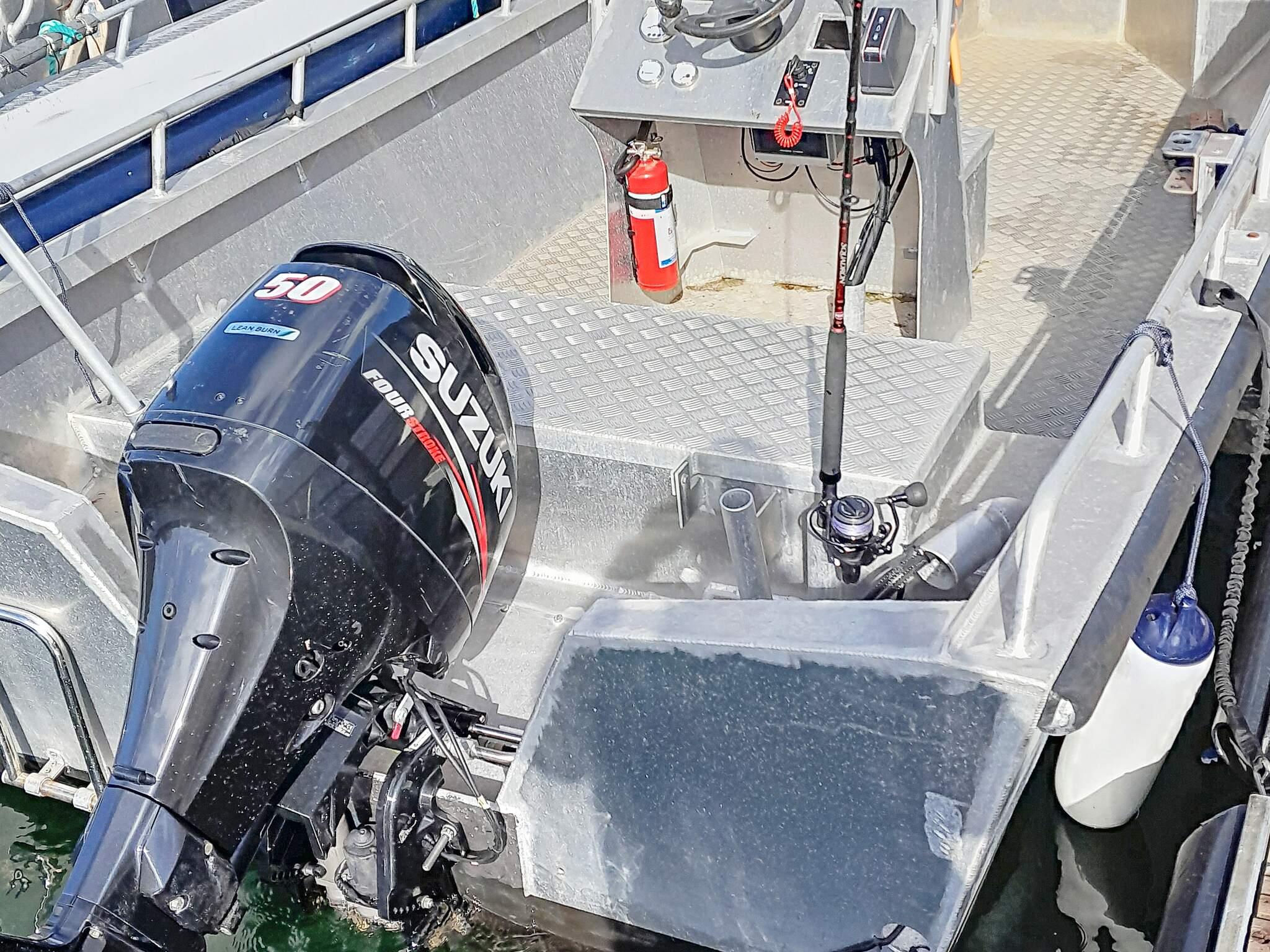 18 fot med 50 hk utenbordsmotor, GPS, kartplotter, ekkolodd, 4 stangholdere.