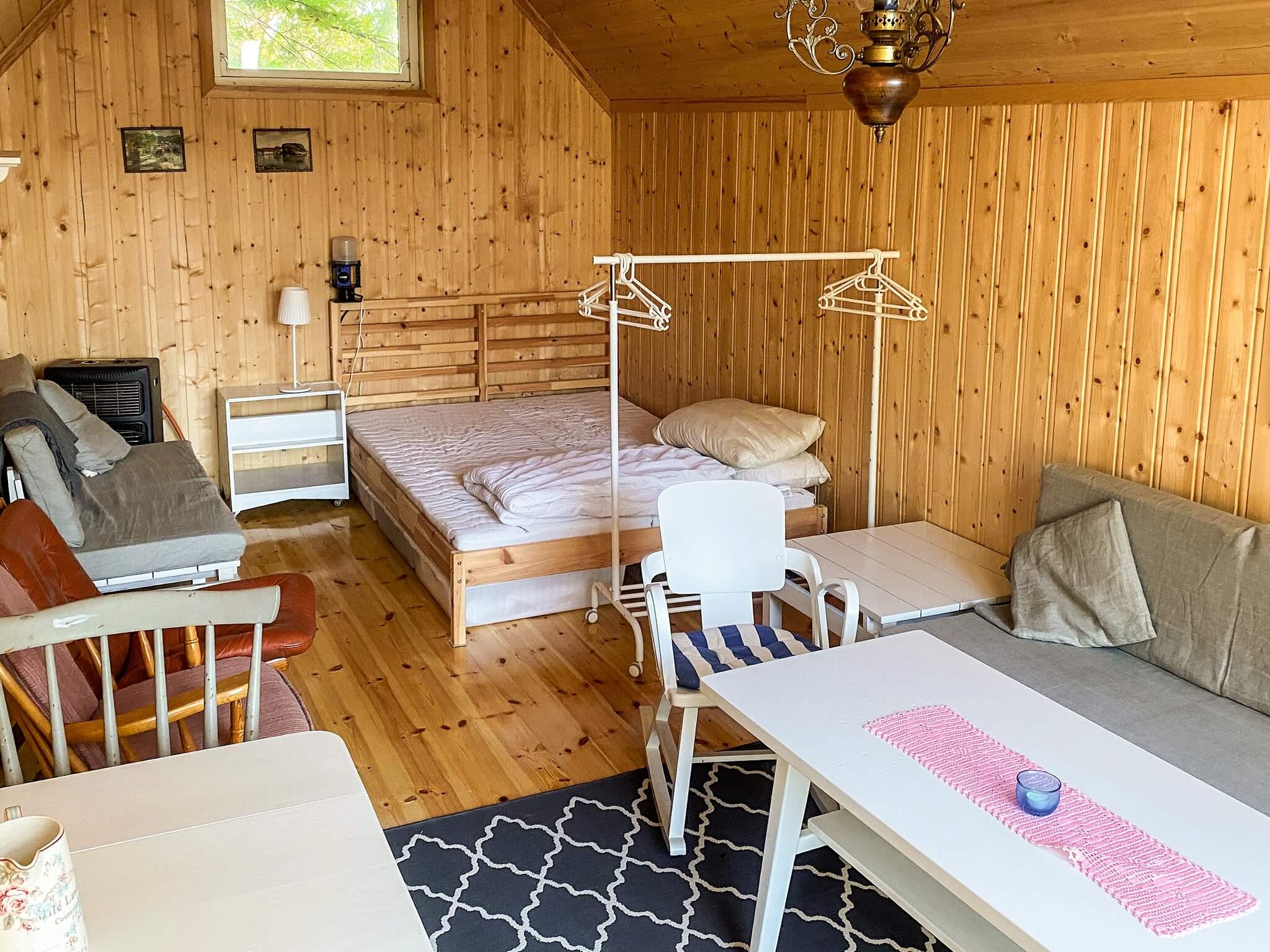 Hytten består av gang, åpent kjøkken, stue og ett soverom i tillegg til anneks. Hytten er godt utstyrt med komfyr, mikrobølegovn, kaffetrakter, vaffeljern og en liten vedovn. I stuen er det en stor peis som innbyr til trivelige stunder foran åpen flamme. Soverom med dobbelseng og sovekøye. Bad/vaskerom i kjeller med dusj/servant og vaskemaskin, inngang utenfra. Noe lav takhøyde i kjelleren (ca. 1,90 cm.).