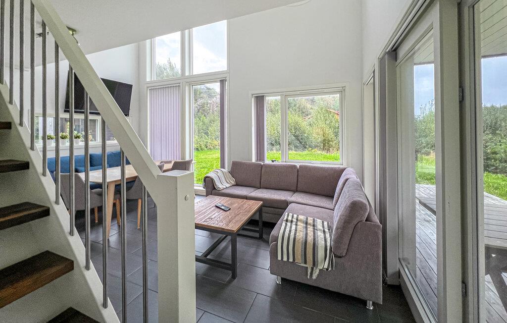 Dette trehuset lover en avslappende ferie i særklasse. En stor vindusfront slipper inn rikelig med varmt lys, samtidig som du kan nyte den fantastiske utsikten over de grønne omgivelsene. Slapp av i sofaen med en kopp kaffe, stream favorittserien din eller start en liten matlagingsduell på kjøkkenet.