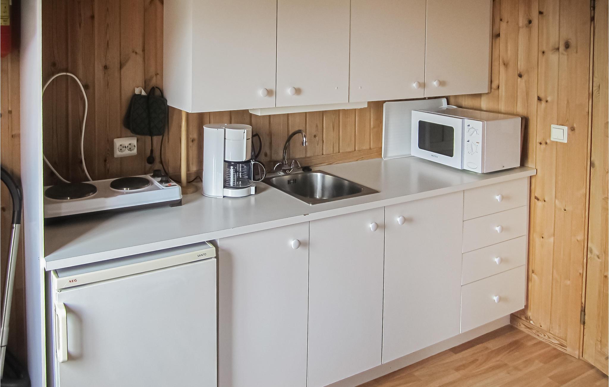 Velkommen til dette koselige feriehuset for opptil 5 personer. Trepanelet på veggene gir huset en koselig atmosfære. I stuen er det komfortable sofaer og TV. Det er 1 soverom med 2 enkeltsenger og en hems med 3 madrasser.
