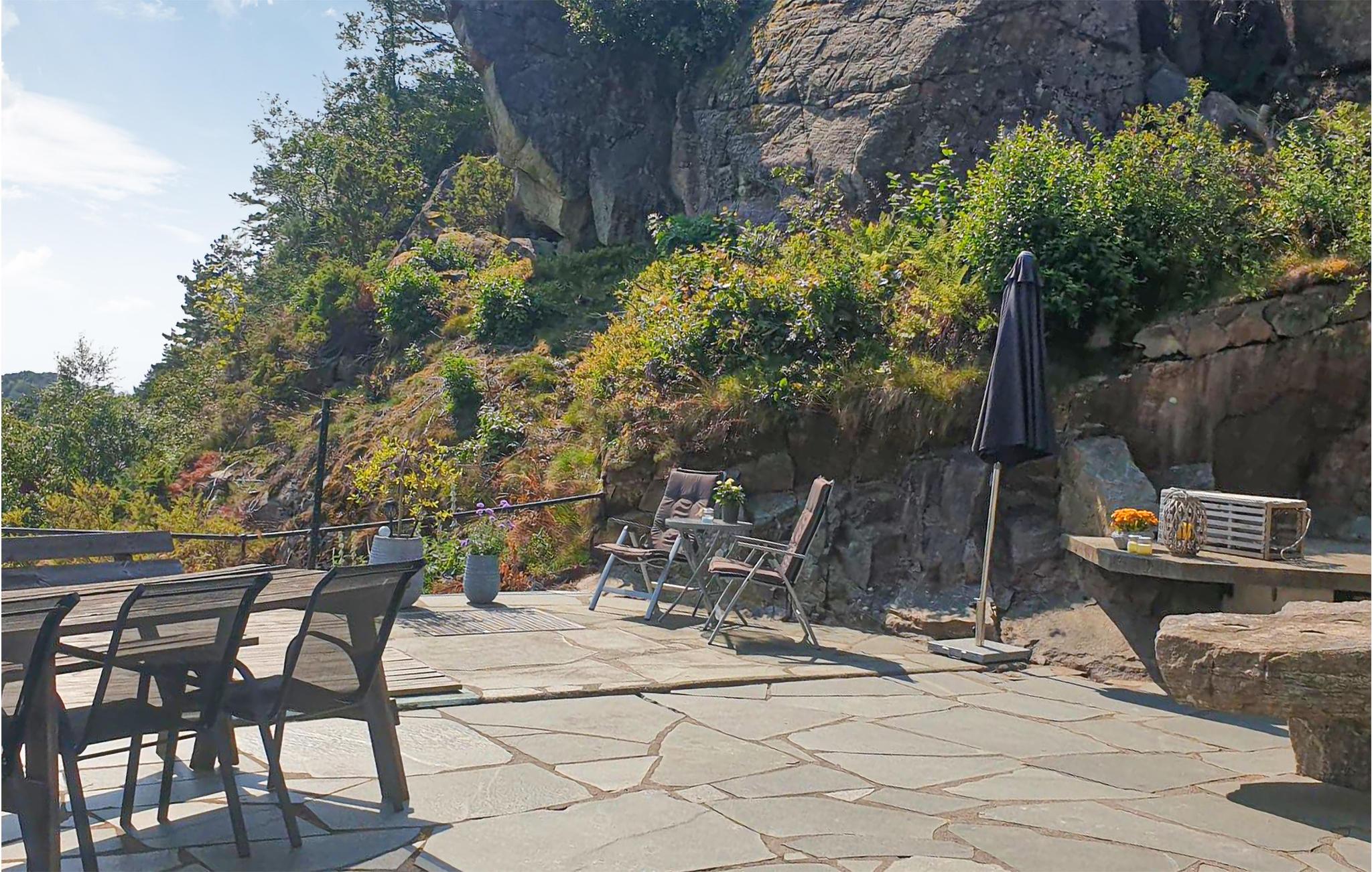 Koselig og romslig feriehus med vakker beliggenhet og god utsikt over fjorden. Det er bare noen få meter til vannet. Her nede venter badestrand, lekeplass og flere gode fiskeplasser. Det er flere båtutleiefirmaer i området som tilbyr båter i alle klasser og utførelser. Når fiskelykken smiler til sportsfiskeren og fisken har bitt, er det fileteringsplass ved huset. Huset er barnevennlig og egner seg godt for store familier eller to familier som ønsker å feriere sammen. Besøk Lindesnes Fyr, Norges eldste fyr (1656), som også huser kafé og museum. Det er flere turstier rundt fyret.