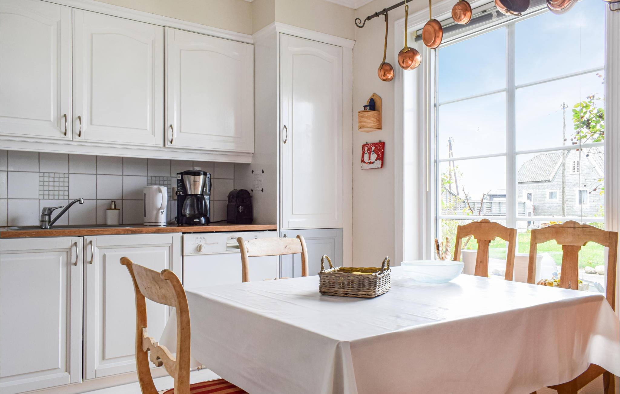 Feriehuset er kjærlig innredet med vakre farger og gode møbler. Med store vinduer som slipper inn mye dagslys er dette et herlig sted å tilbringe lange og avslappende feriedager.