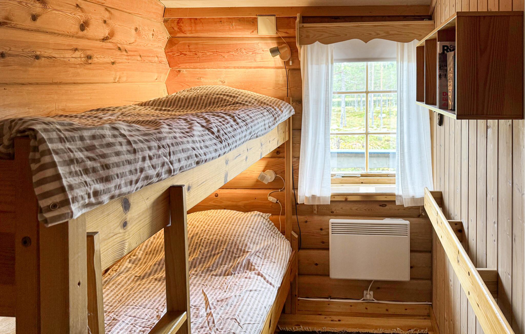 Nyt naturens ro, duften av skog og følelsen av frihet midt i et imponerende fjellandskap. Hytta er bygget helt i tre og utstråler rustikk hygge. Slapp av i den romslige stuen i den komfortable sofaen, eller slå deg ned ved det store spisebordet, hvorfra du kan se ut gjennom panoramavinduene og direkte ut på de vidstrakte skogene. Tilbered måltidene sammen på det praktiske kjøkkenet, og badstuen i huset gir deg muligheten til å slappe helt av etter en dag i naturen.