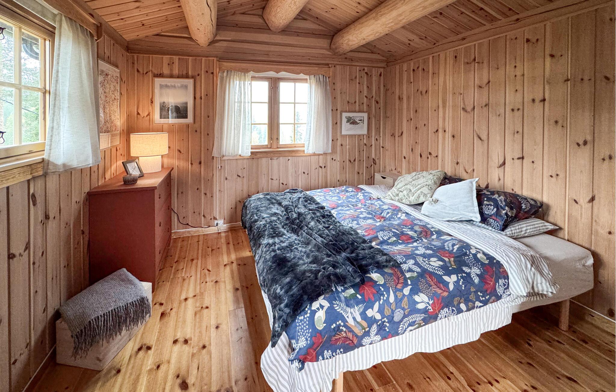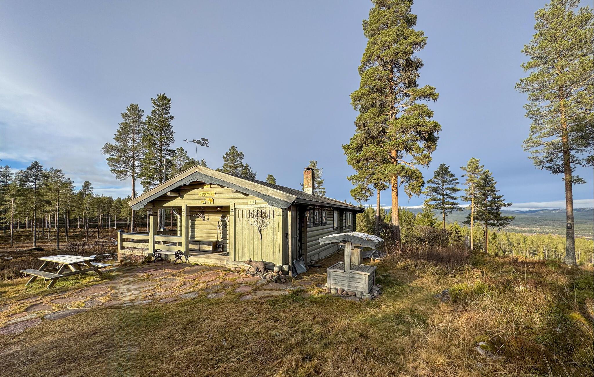 Et avslappende opphold venter deg i denne koselige tømmerhytta med vidstrakt utsikt over skoger og daler.