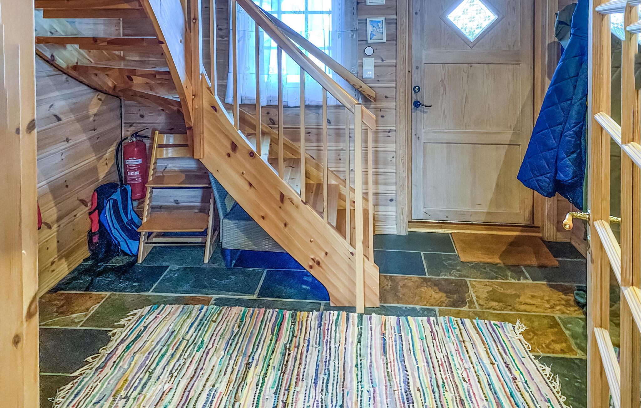 Feriehuset ditt, som ikke ligger langt fra innsjøen Farevatn, ønsker deg velkommen med unike naturopplevelser og en fantastisk panoramautsikt over de omkringliggende fjellene. Huset med det vakre naturtaket glir nesten sømløst inn i omgivelsene og lover en innholdsrik ferieopplevelse for hele familien. På den store naturtomten er det god plass til eventyrlige leker. Etterpå innbyr terrassen til å slappe av eller grille. Eller hva med en forfriskende dukkert i det finske trebadet mens du slapper av og nyter fjellpanoramaet. Du bør heller ikke gå glipp av en beroligende badstueøkt.