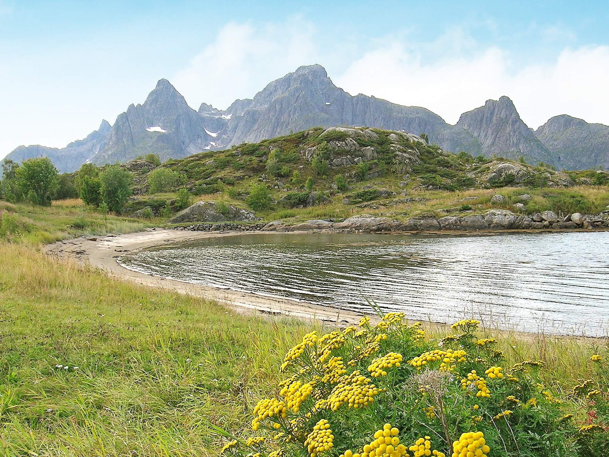 Ferieleilighet i første etasje i bolighus med utsikt mot bygda og sjøen. Her er flere flotte sandstrender i området, og stedet er et fint utgangspunkt for dagsturer med bil rundt omkring i Lofoten.