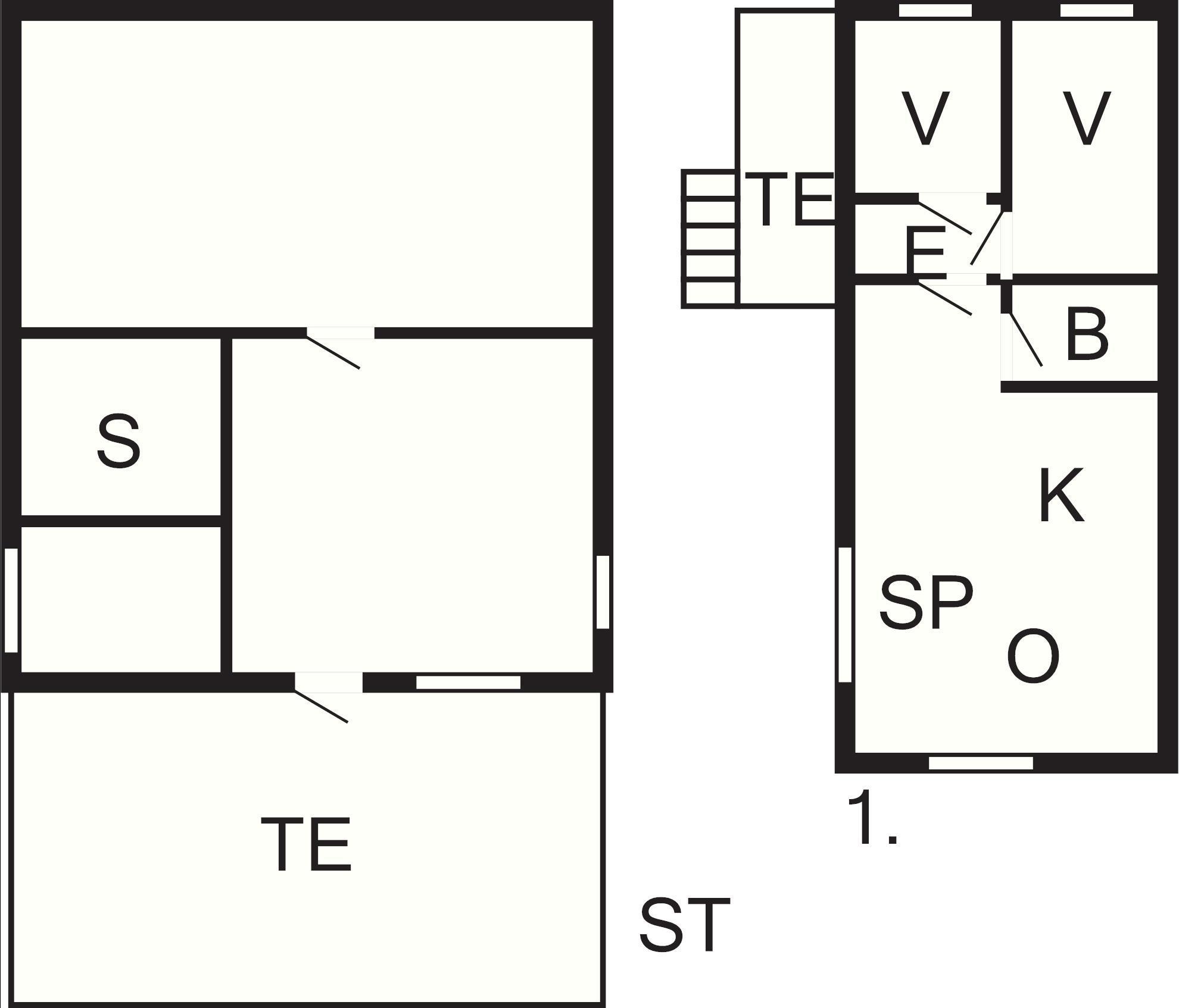 1 Oppholdsstue: 35 m2, (1S), vedovn, radio, CD, TV, parabol