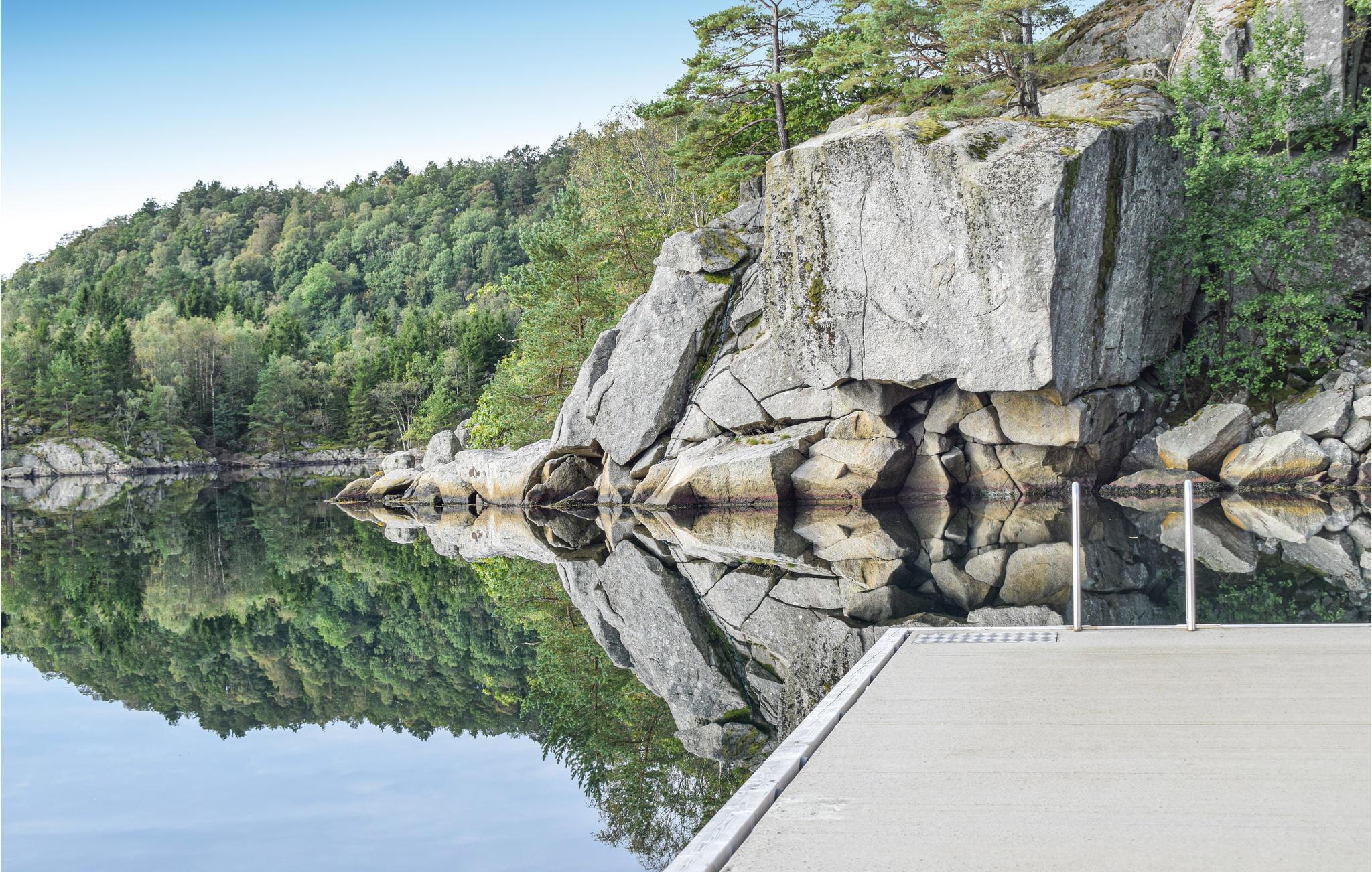 Feriehuset ligger nær fjorden og byr på gode muligheter for fotturer og sykkelturer. På fine dager kan du ta en forfriskende dukkert eller dra på spennende fisketurer.