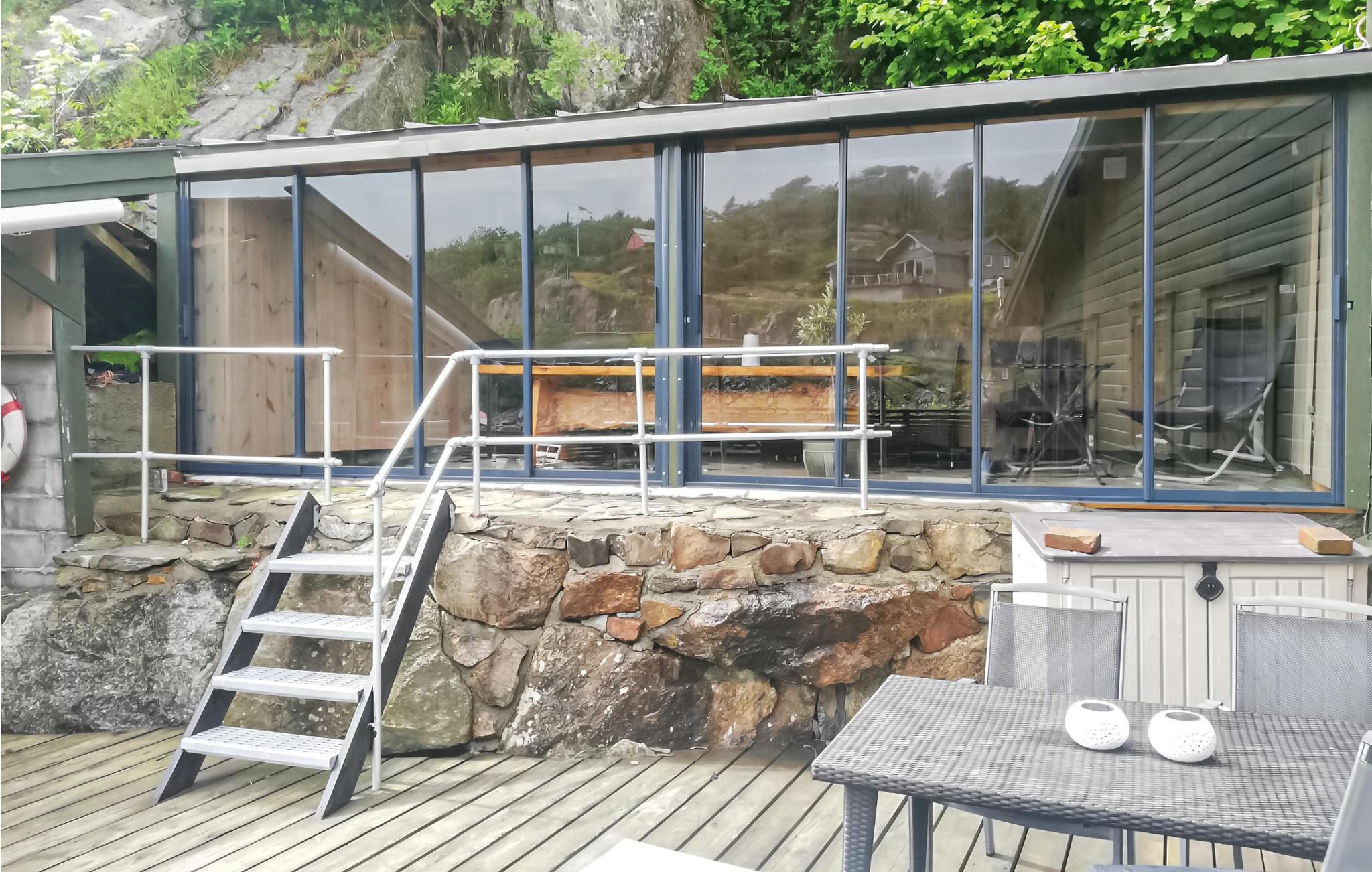 Bare 7 km øst for Mandal finner du dette feriehuset på en stor naturtomt rett ved vannet. Og husets egen motorbåt venter på deg utenfor døren. En ekstra motorbåt kan leies. Du kan forvente torsk, lange og sei på fiskekroken her. Det er også gode bademuligheter og et variert tur- og sykkelområde. Mandal har en rekke shoppingmuligheter og en lang sandstrand. Besøk kunstmuseet Andorsengården med egen sjøfartsavdeling. Du kan parkere bilen 200 m unna og slipper å kjøre opp til huset.