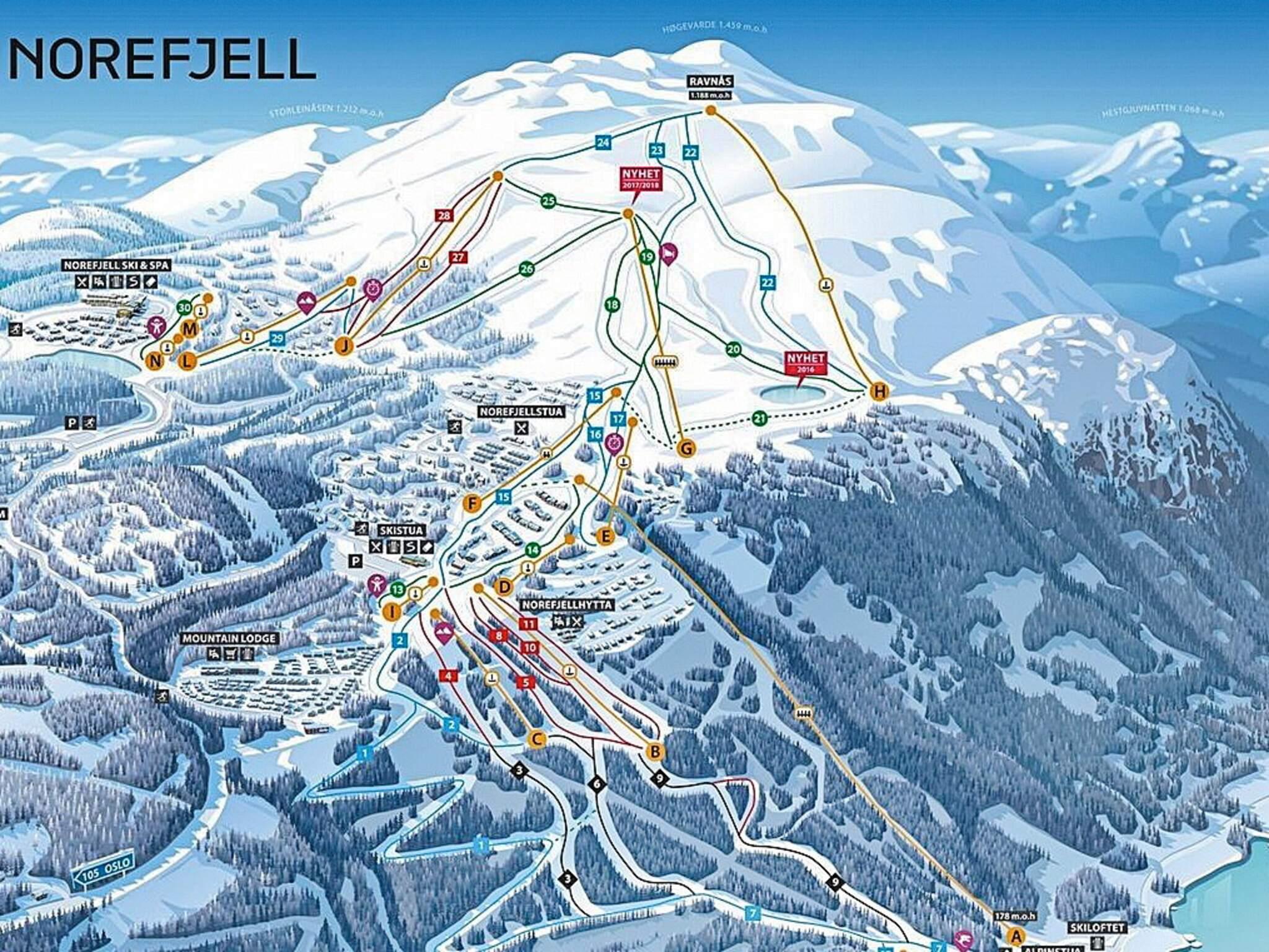 Norefjell alpinanlegg har hele 14 heiser og 31 nedfarter. Lysløype ett steinkast unna for de som vil gå langrenn.