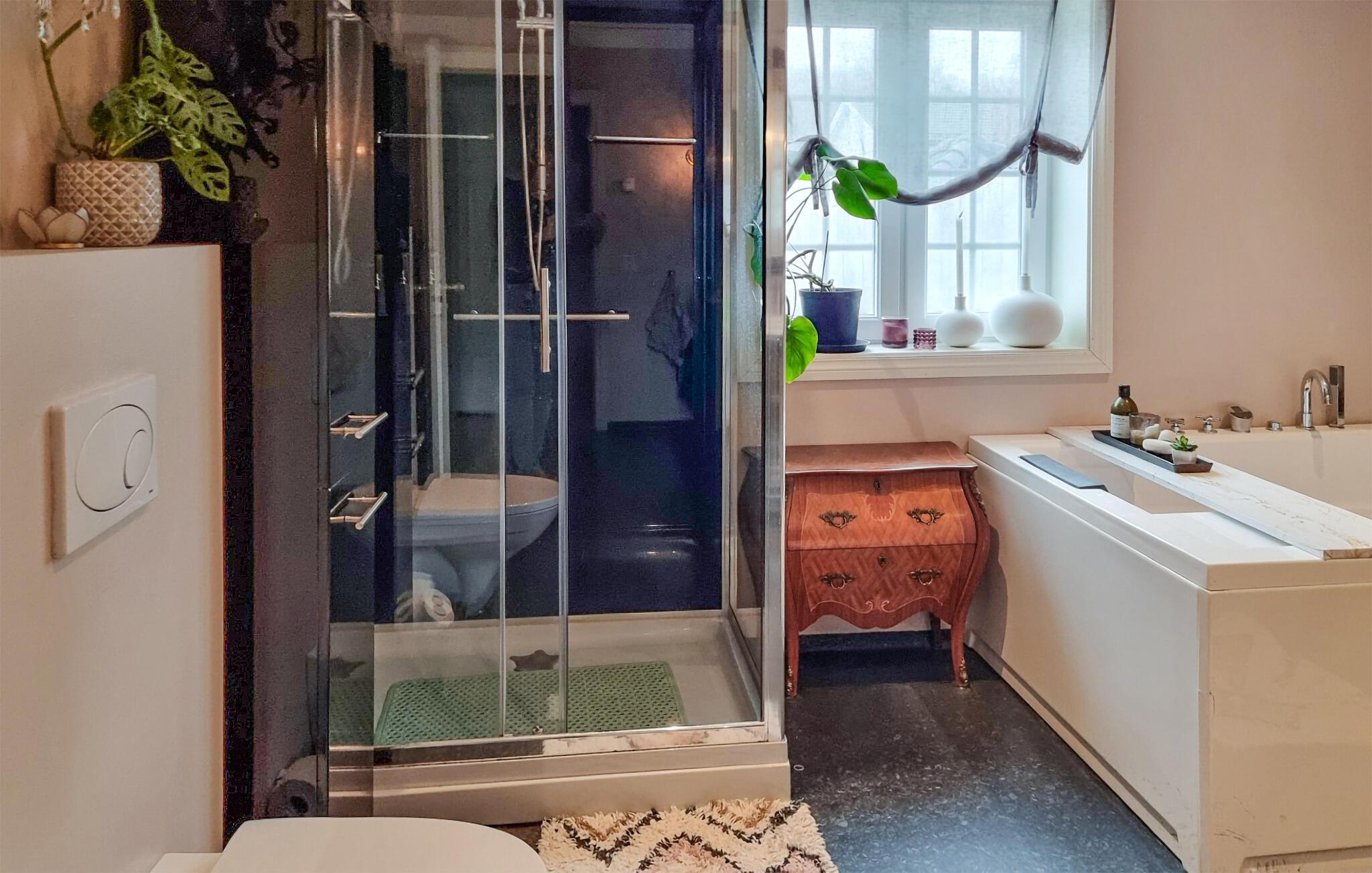 - WC med varmt og kaldt vann, Hånddusj, badekar og dusj