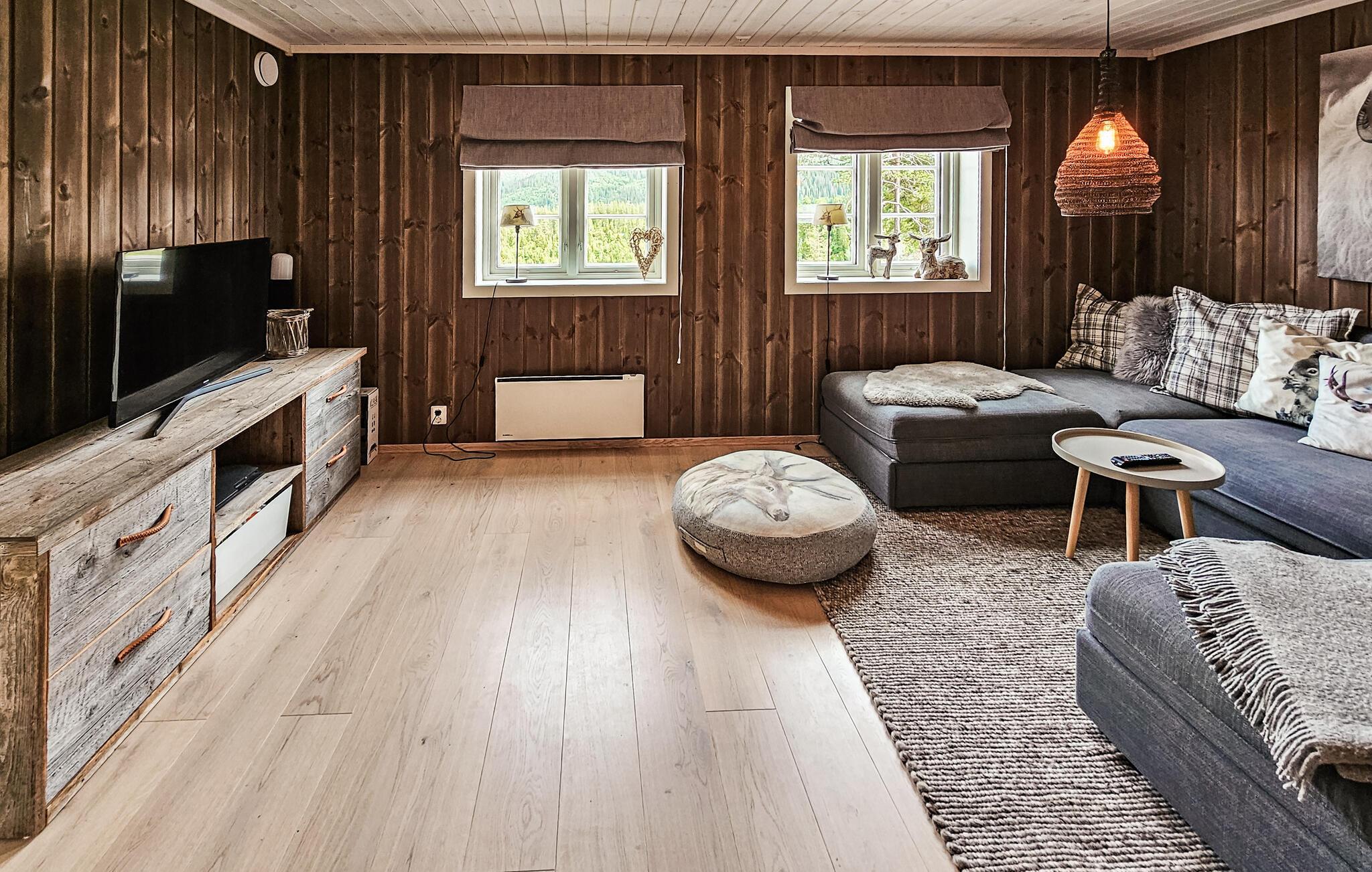 Fred og natur møter komfort og hygge i feriehuset ditt i Rajekollen feriehusområde. Huset har plass til en større familie. Innvendig finner du tradisjonell norsk tre-design og moderne bekvemmeligheter. Den store stuen, innredet med en komfortabel sofagruppe og peis, innbyr til koselige kvelder. Tilbring tid her med en bok, eller la deg inspirere av den vakre utsikten fra de store vinduene. Du kan tilberede dine favorittretter på det velutstyrte kjøkkenet og nyte dem ved det rustikke spisebordet med utsikt over de naturlige omgivelsene.