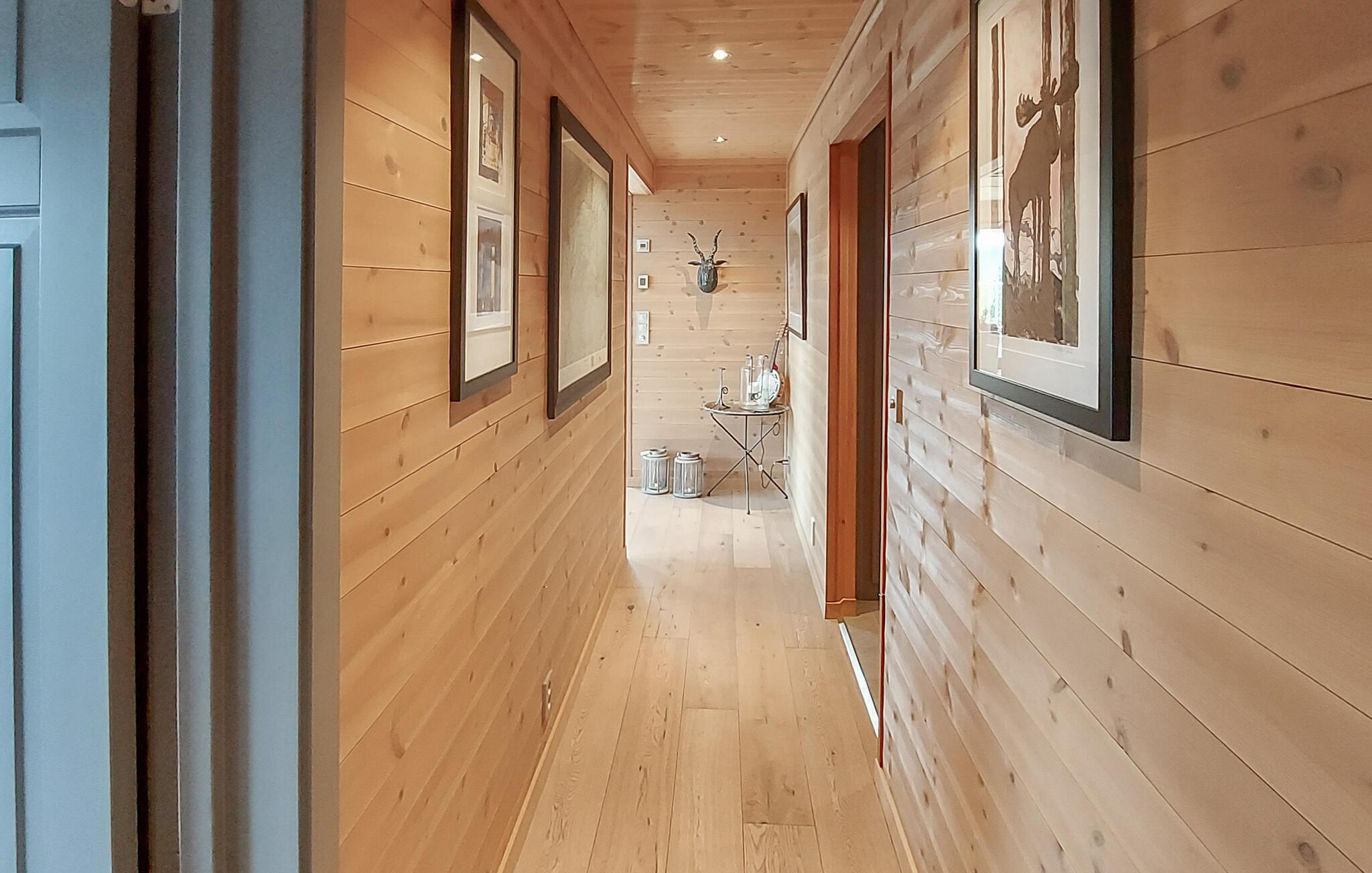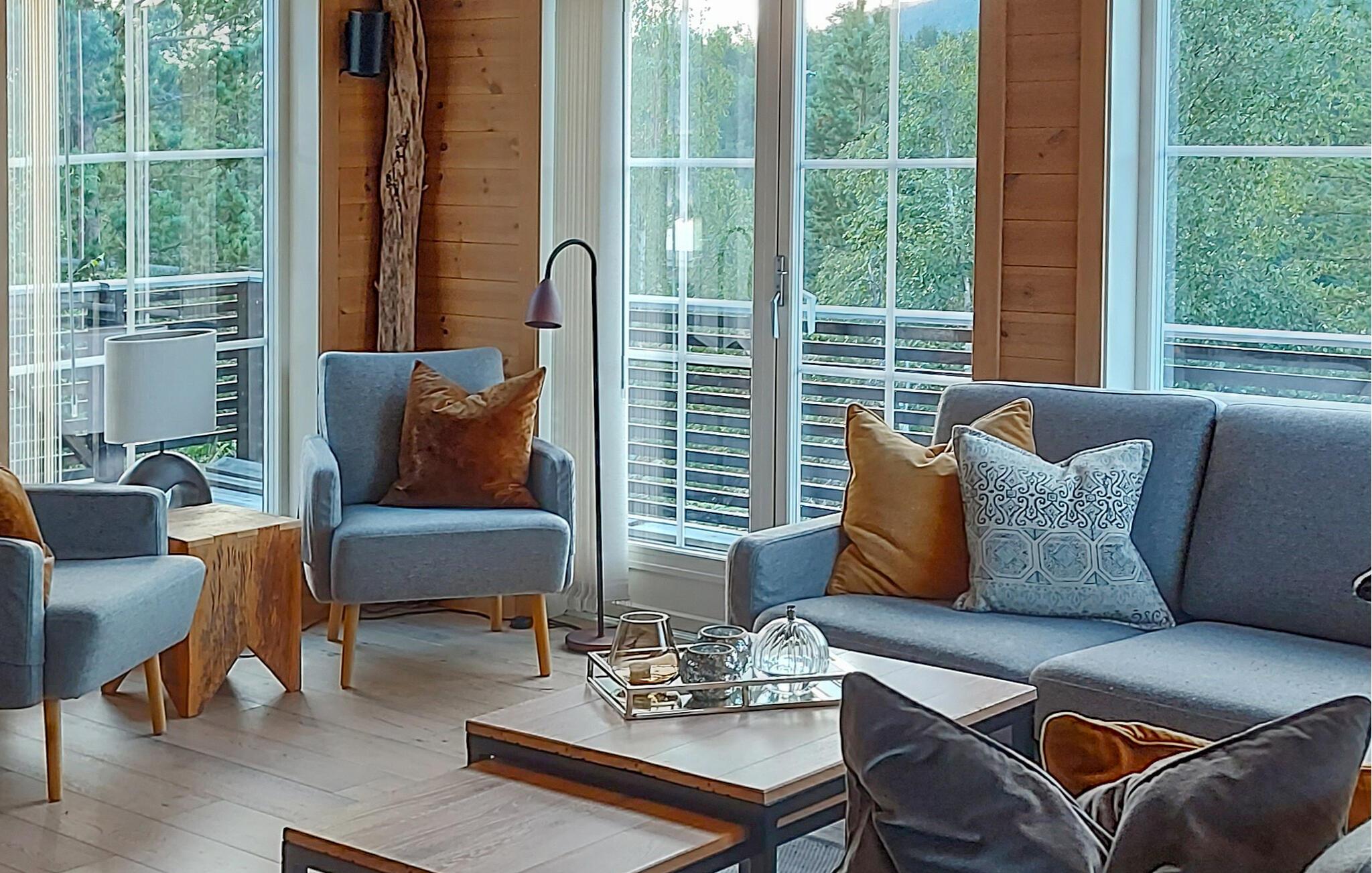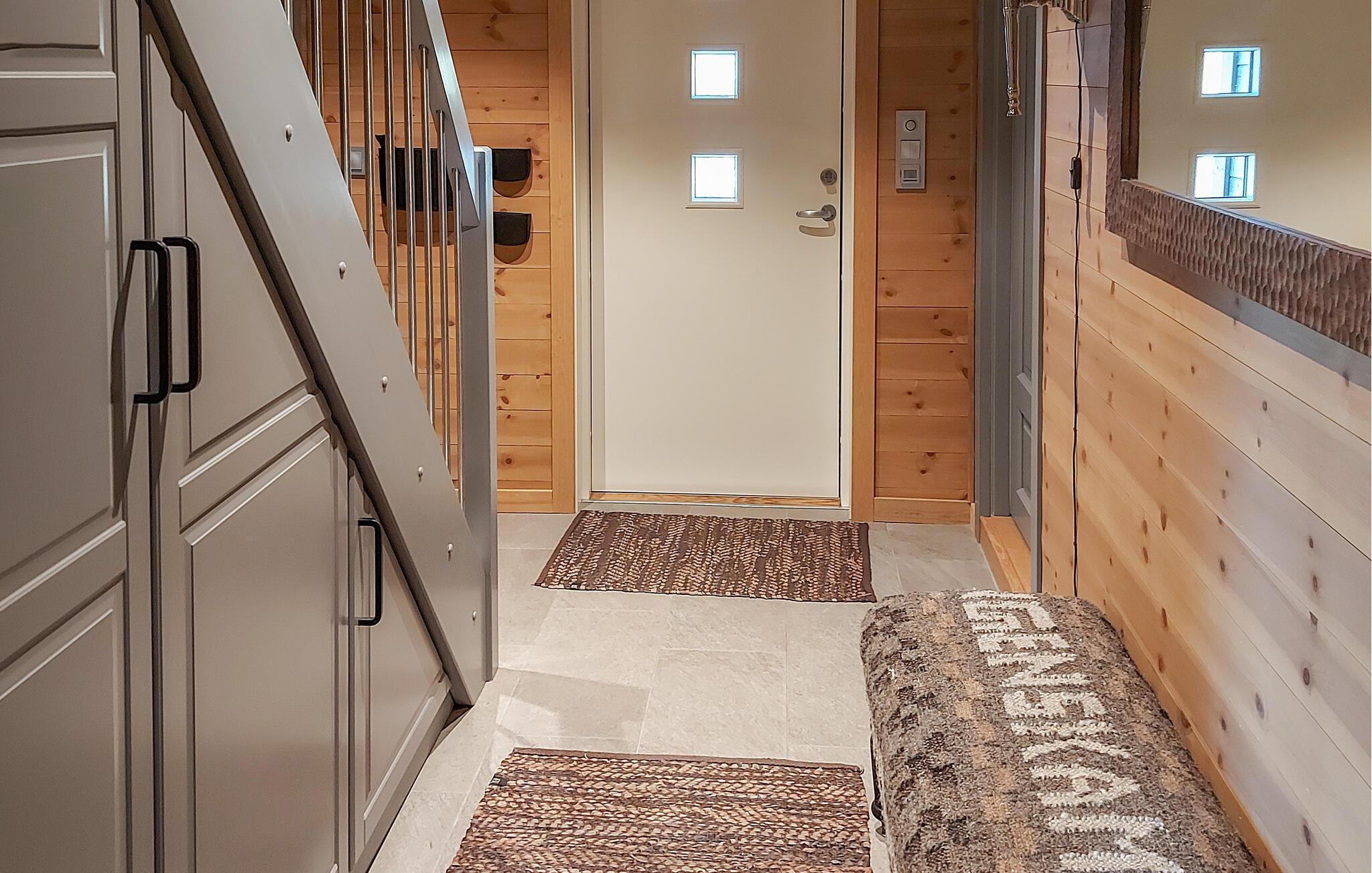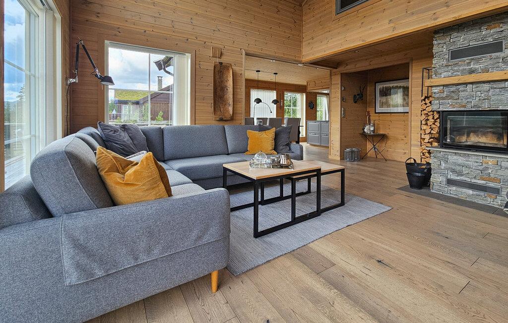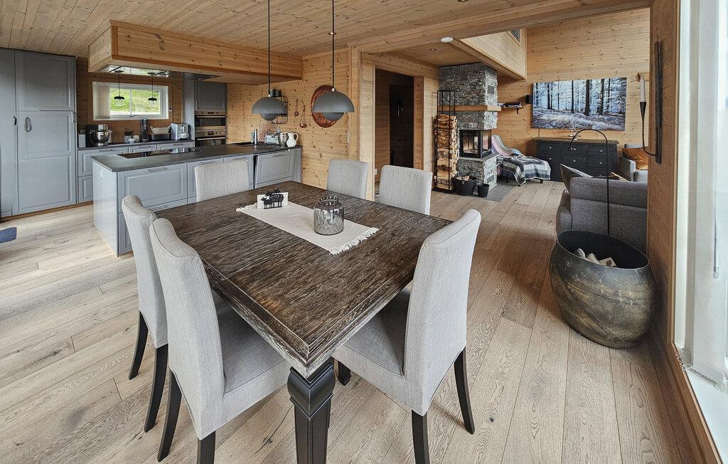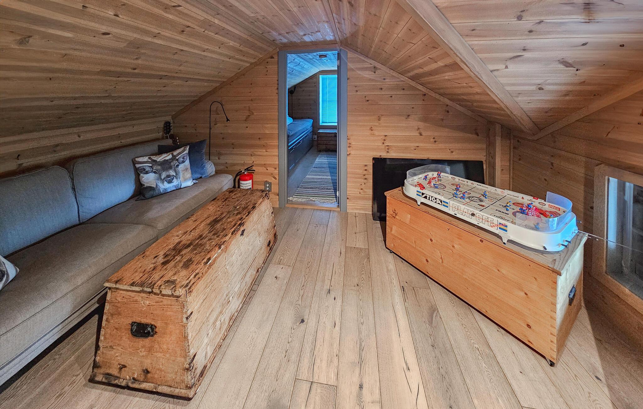 Dette sjarmerende trehuset i Raje byr på en herlig kombinasjon av tradisjon og moderne innredning. Den luftige stuen, som flommer over av naturlig lys, gir deg en fantastisk utsikt over det omkringliggende landskapet og inviterer deg til koselige kvelder med en stor peis. Det åpne kjøkkenet gir plass til å lage mat sammen, mens spisebordet er perfekt for brettspill med familien.