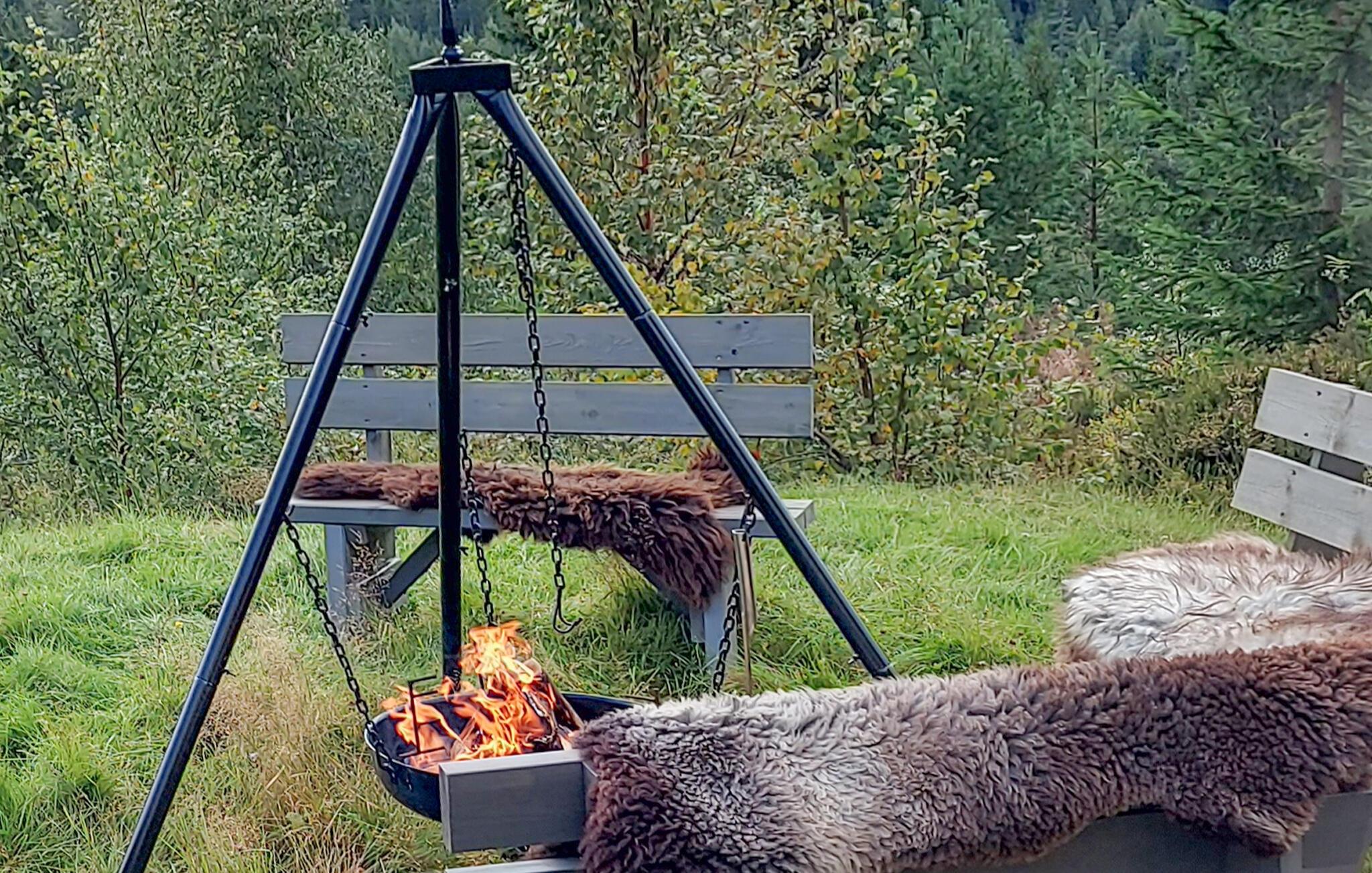Du kan nyte solen på den romslige terrassen, og bålplassen i hagen sørger for koselige kvelder når du rister brød og marshmallows over flammene.
